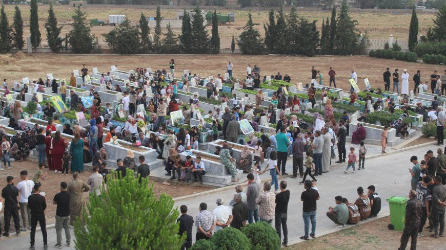 Piştî nimêja Cejna Qurbanê, malbatên şehîdan, endamên saziyên sivîl, saziyên Rêveberiya Xweseriya Demokratîk, Asayîş, fermandar û şervanên QSD, YPJ û YPG’ê jî di nav de bi hezaran kes serdana goristanên şehîdan kirin.