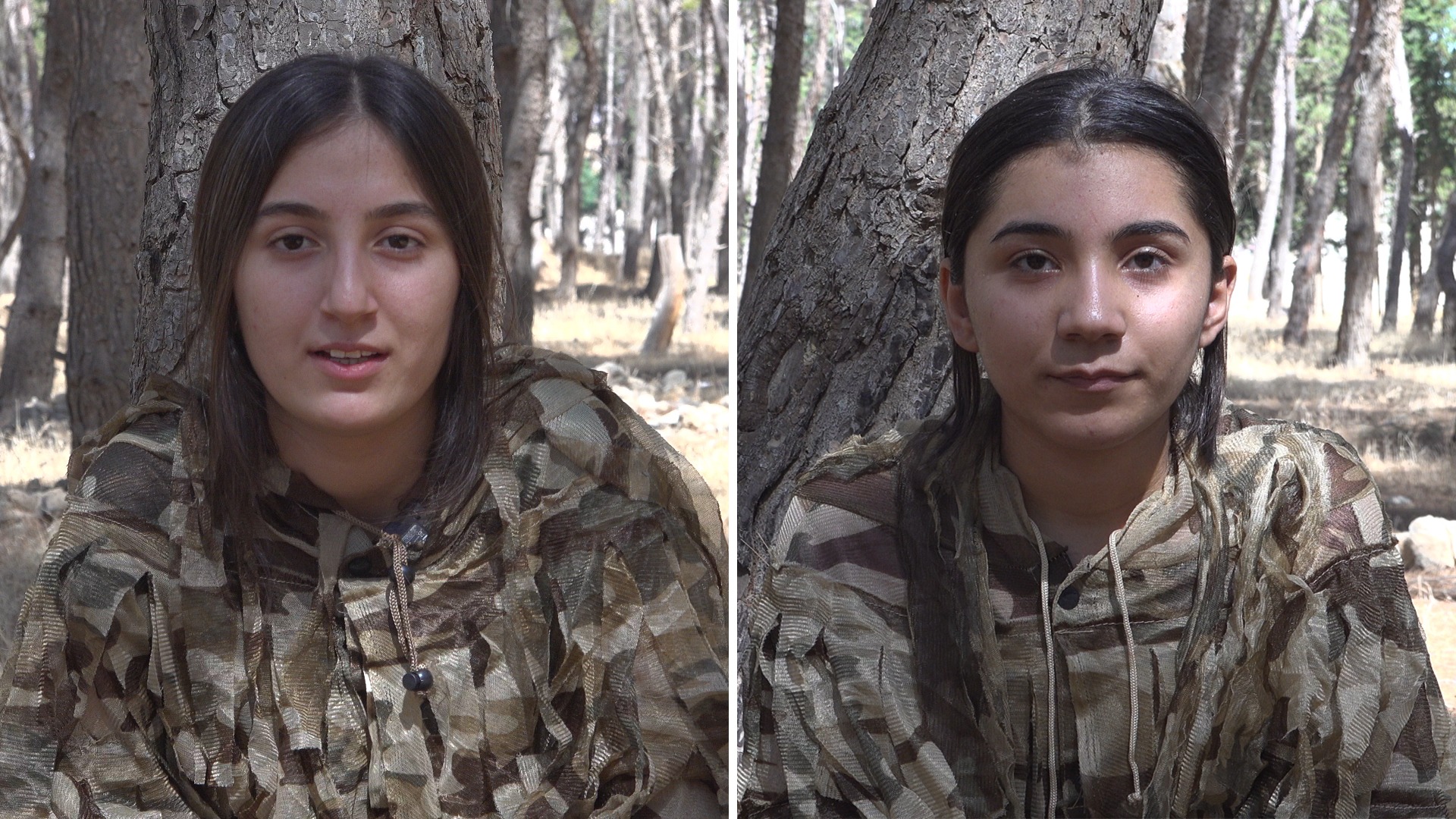 “Navê min Evrîn Xemgîn e, ez ji bajarê Kobanê me. Ez pir bandor bûm ji xwîna şehîdan, ji Rêber Apo, ji jinên ku zilm dibînin di nav civakê de. Jin pir zilmê dibînin, heyatê xwe nabînin. Lê di nav partî de tiştekî cuda ye. Huriyet heye, heyat xweş e vê derê. Ez ji bo bajarê xwe hatim, ji bo Kurdistanê ava bikin, ji bo Serok Apo. Serok Apo bû 26 sal di zindana de ye. Em ji bo serokê xwe hatin, ji bo xwîna şehîdan. Ez jî hatim sîlehê apê xwe yê şehîd rakim, şehîd Xemgîn Kobanê.”