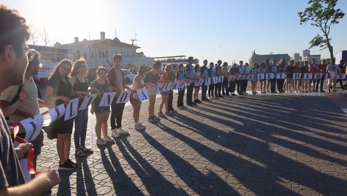 Rêxistinên ciwanan têkildarî salvegera 9’emîn a Komkujiya Pirsûsê bi dirûşmeya “Em di zincîra edaletê de li hev dicivin” li Qada Îskeleyê ya Kadikoyê çalakî li dar xistin. Ciwanan di çalakiyê de piştî rêzgirtinê navên 33 rêwiyên xeyalan ên ku di Komkujiya Pirsûsê de hatin qetilkirin xwendin û gotin “li vir in”.