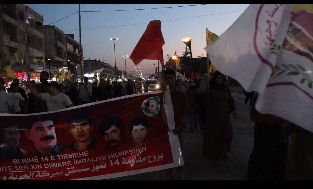 Îro danê evarê ji aliyê ciwanên Derîk û Girkelêgê, Çilaxa û Tilkoçer ve şehîdên 14 Tirmehê bi meşekî meşaleyî hat bîranin. Meşa ku sedan ciwan tevlîbûn de pankarta ku li ser “Bi rihê 14 Tirmehê Şoreşa 19 Tirmehê Serbixin” hate hildan û ciwan bê navber sloganên Şehîd Namirin û Bijî Serok APO berz kirin. Her wiha di meşê de êrîşên dewleta Tirk a dagirker û hevkariya PDK jî hat protesto kirin.