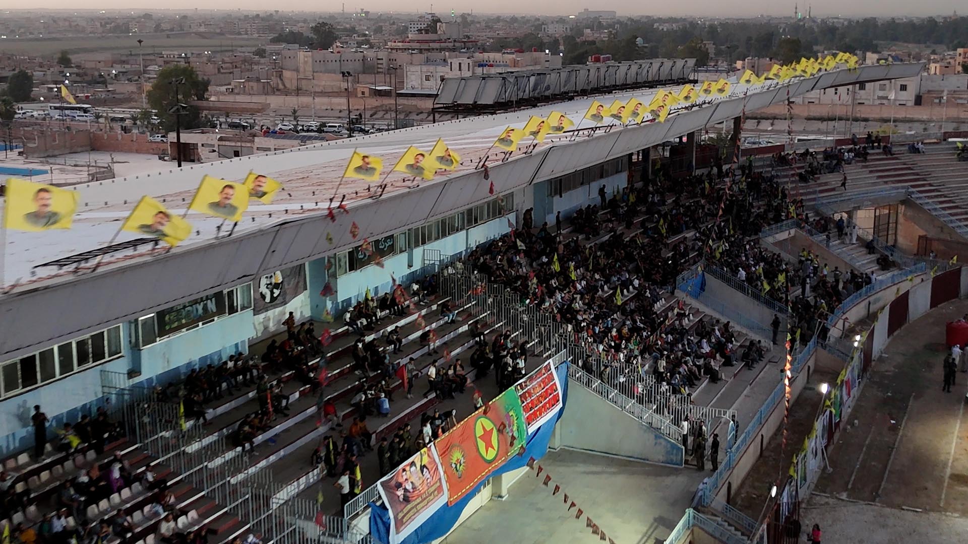 Di serî de ji bo bîranîna tevahî şehîdên şoreşê deqayekî rêzgirtin hat girtin. Piştî wê cîgerê hevserokatiyê Rêveberiya Xweseriya Demokratîk a Bakur û Rojhilatê Sûriyê Hesen Koçer axivî.