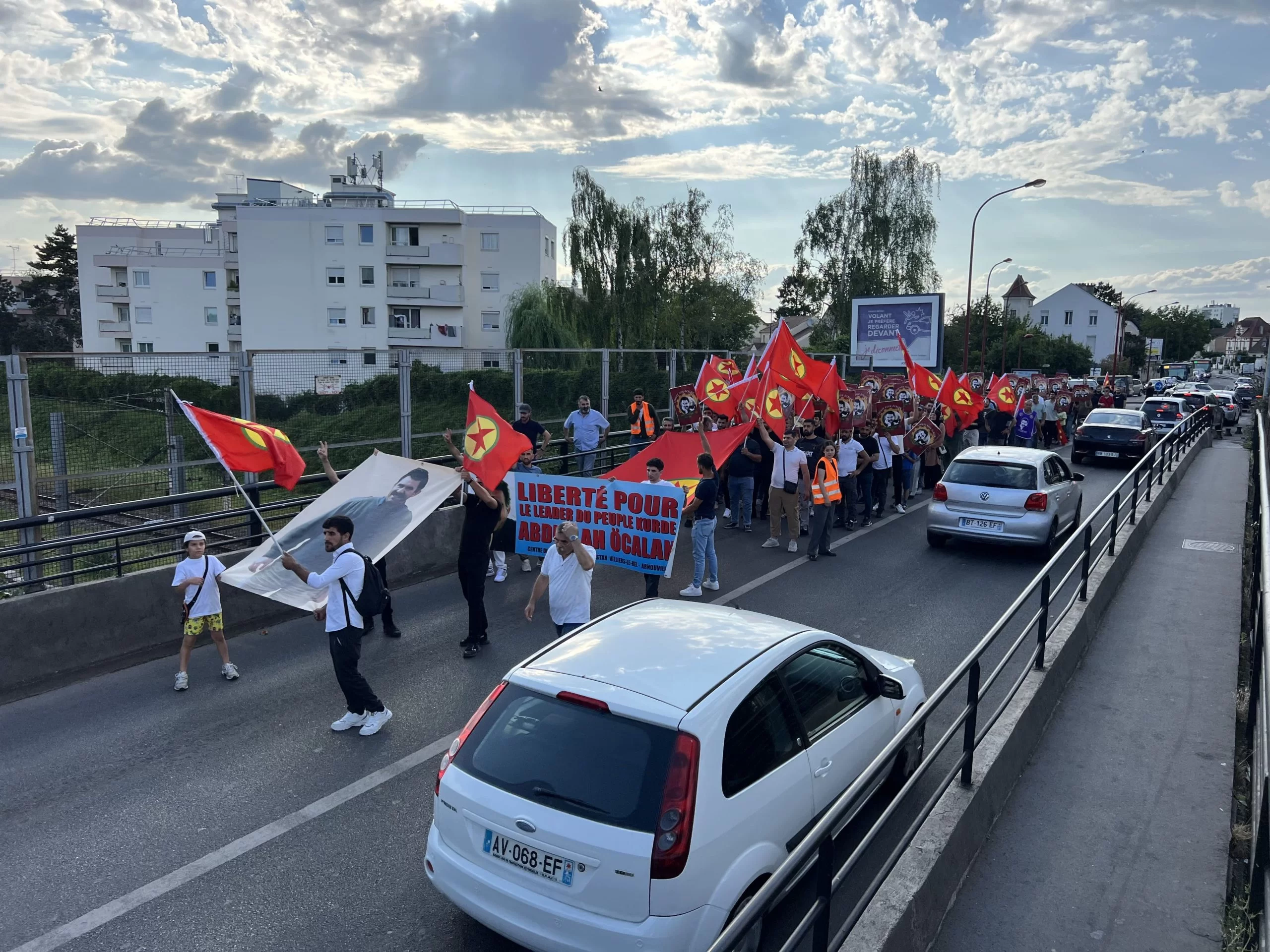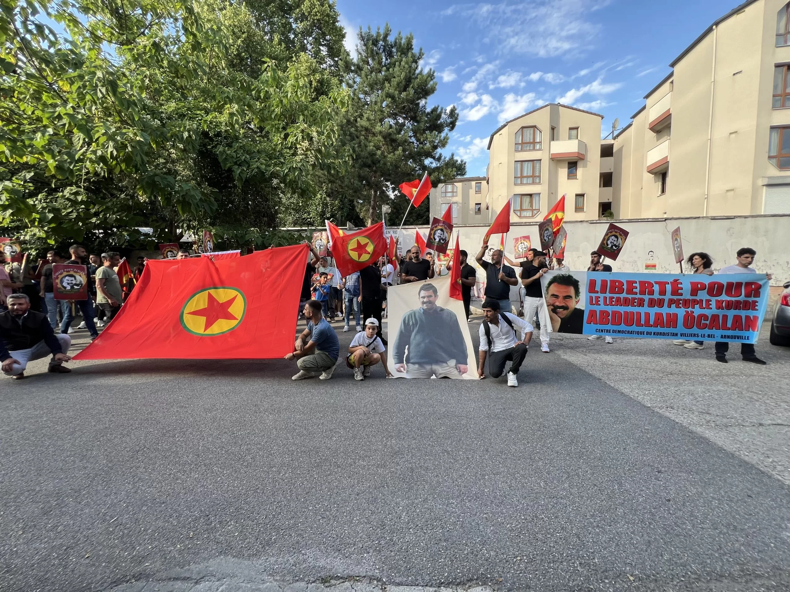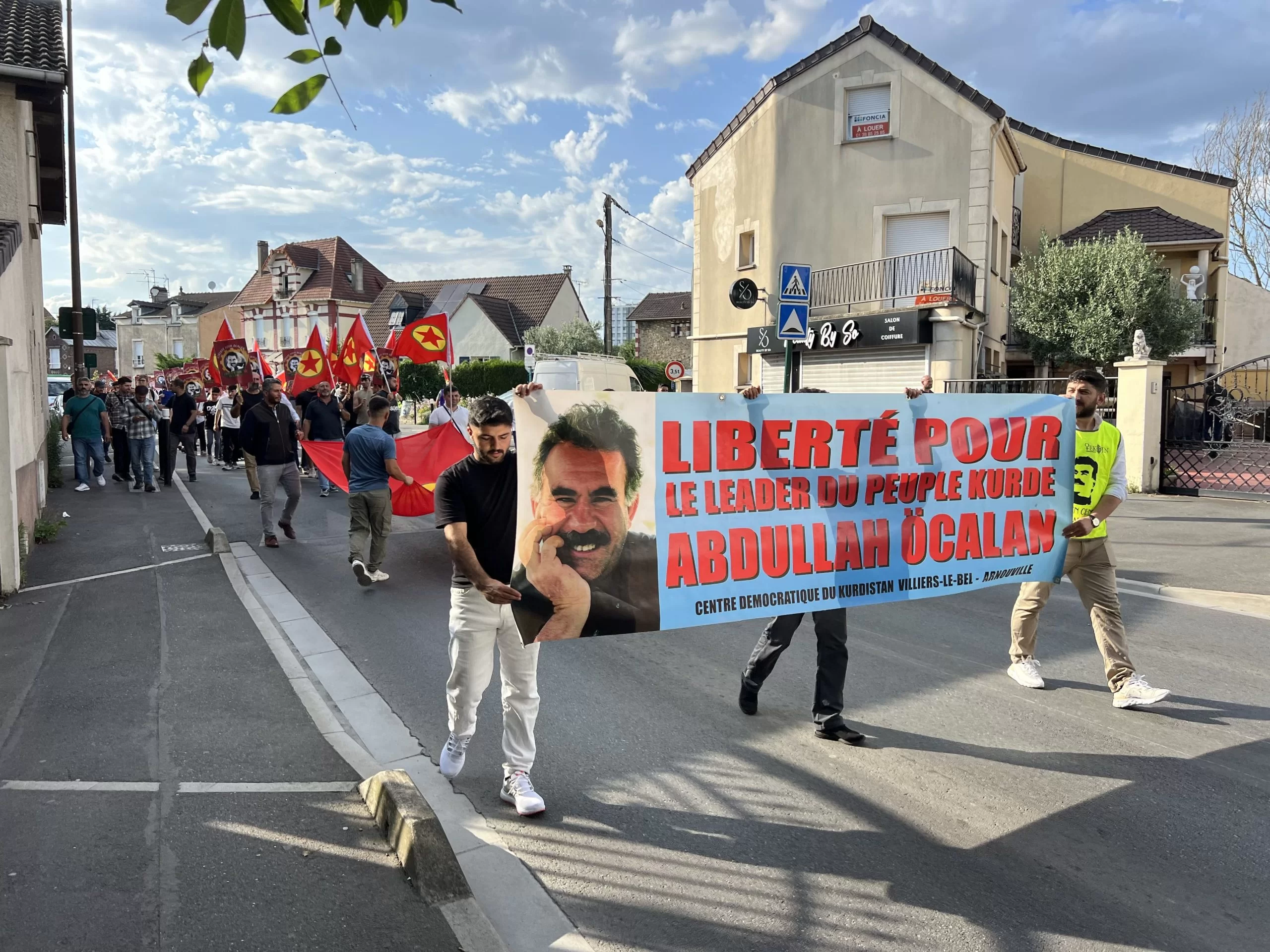 Bi pêşengiya ciwanên endamên TCŞ û TekoJIN’ê, tecrîda girankirî ya li ser Rêber APO û êrîşên dagirkeriyê yên li ser Başûrê Kurdistanê li bajarê Villiers-le-Bel ê Parîsê hate protestokirin.
