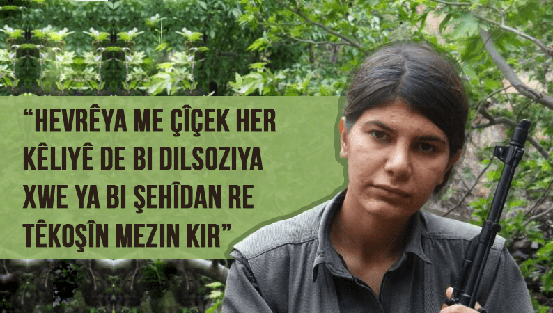 Hevrêya me Çîçek ku bi beşdariya li nava refên azadiyê ji bo jiyana azad a gelê me têkşoiya, bi tevlîbûna xwe ya fedakar û bêteredût, di afirandina serketineke bi vî rengî ya dîrokî de bû xwedî ked. Hevrêya me Çîçek bi sekna jin a azad a di nava jiyanê de û bi wêrekiya xwe ya di şer de weke milîtaneke YJA Starê ya mînak derbasî nava dîroka me ya têkoşînê bû. Hevrêya me Çîçek ku bi tevlîbûna xwe ya bêfikar û têkoşîna xwe ya di asta herî bilind de ji hevrêyên xwe re bû mînak, li herêma Metînayê tevlî gelek karî bû. Bi sekna xwe ya bi israr a li ser xeta PKK û PAJK’ê, li hemberî êrişên dijmin tawîz neda, bi baweriyeke mezin û moraleke bilind wezîfe û berpirsyariyên xwe bi cih anî. Di her kêliyê de bi dilsoziya xwe ya bi şehîdan re têkoşîn mezin kir.