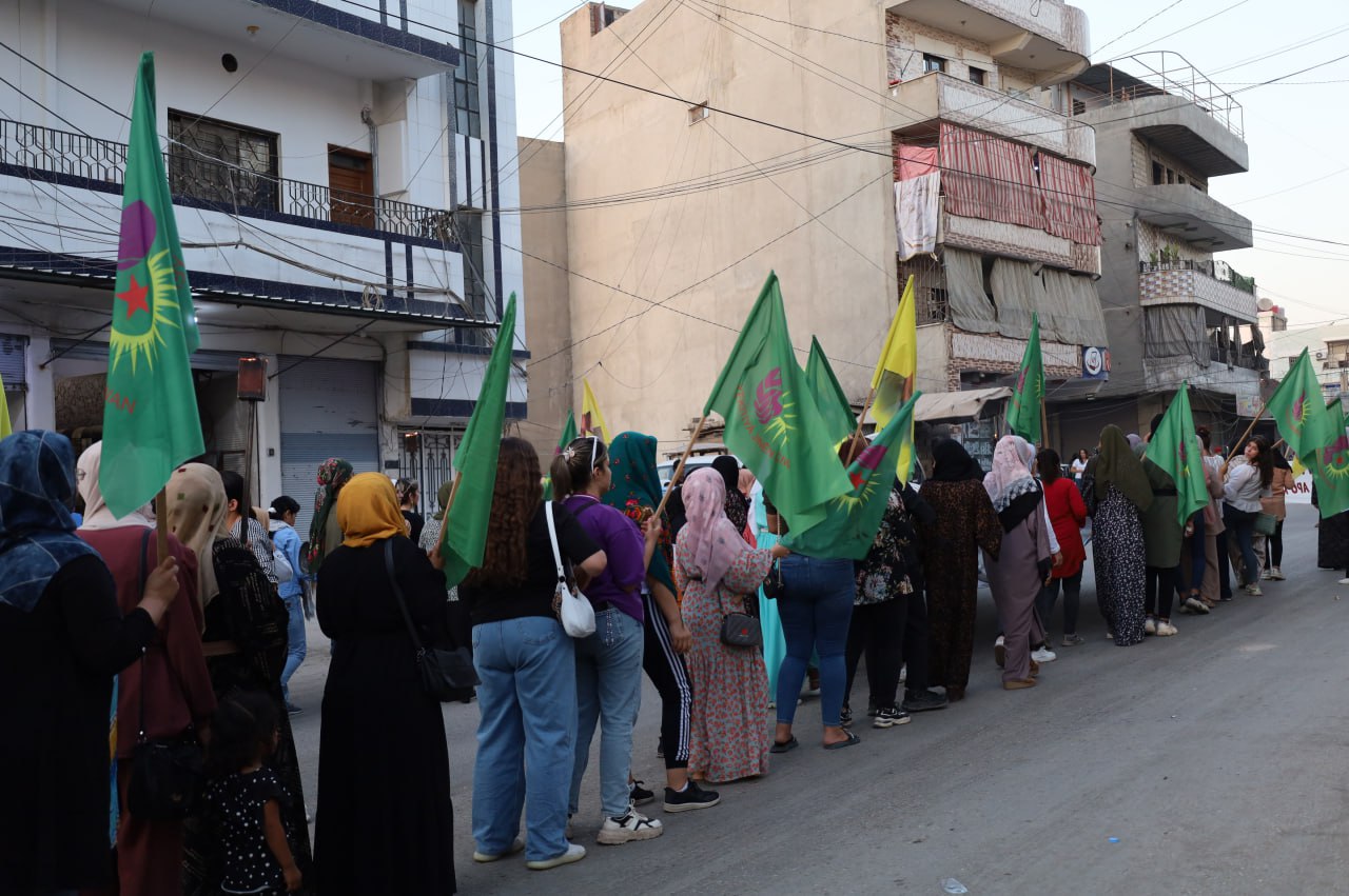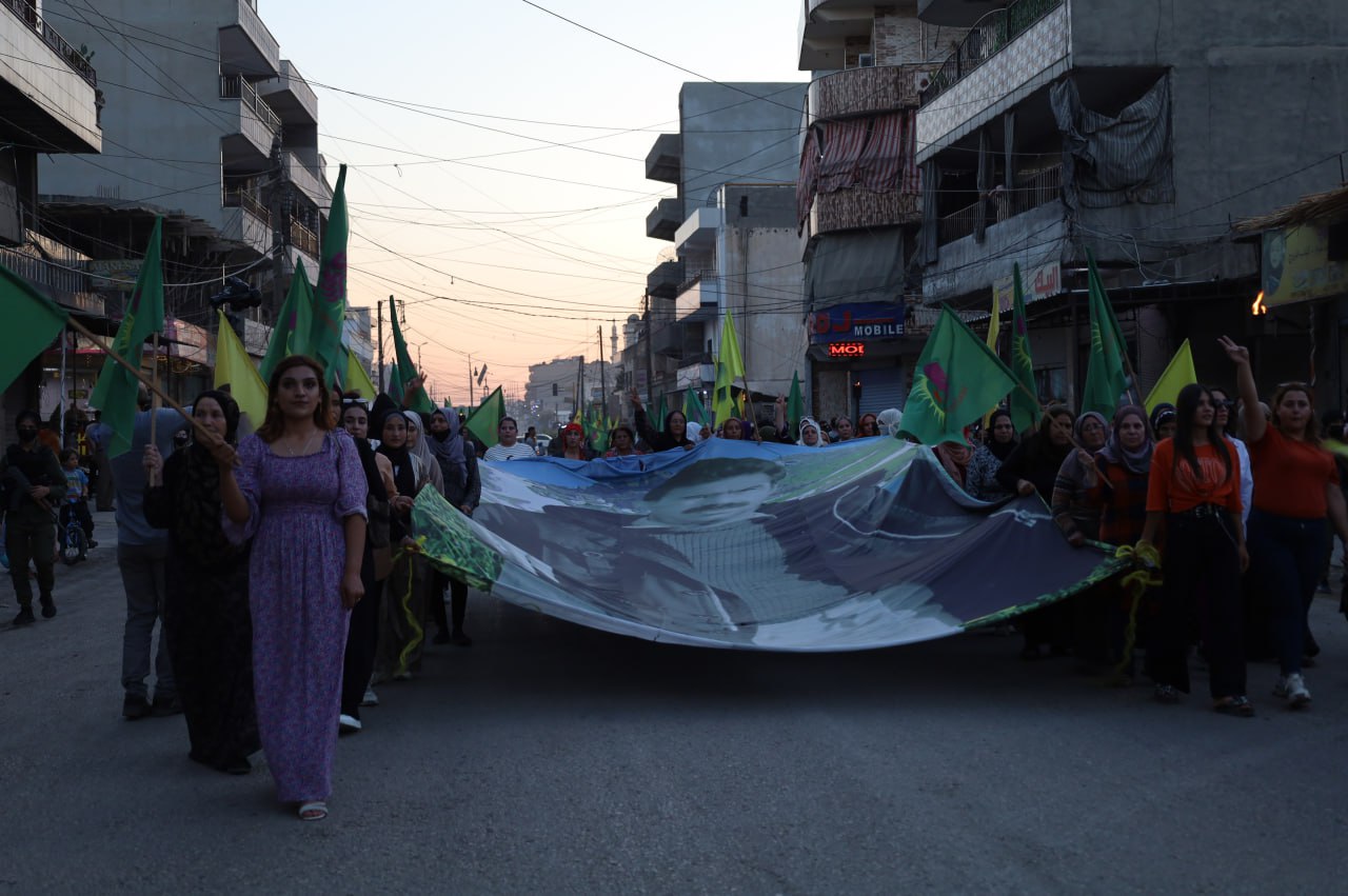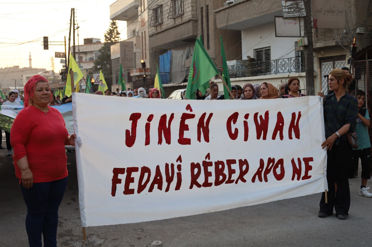 QAMIŞLO- Îro Yekitiya Jinên Ciwan ên Herêma Cizîrê ji bo azadiya fîzîkî ya Rêber APO û şermezarkirina polîtîkayên tecrîd û izolasyonê yên faşîst, dewleta Tirk a dagirker li ser Rêber APO tê meşandin û li hemberî vê yekê bêdengiya CPT û dewletên derve , li Qamişlo kom bûn û bi tevlêbûna sedan ciwan û jinan ciwan meşeke girseyî li dar xistin.