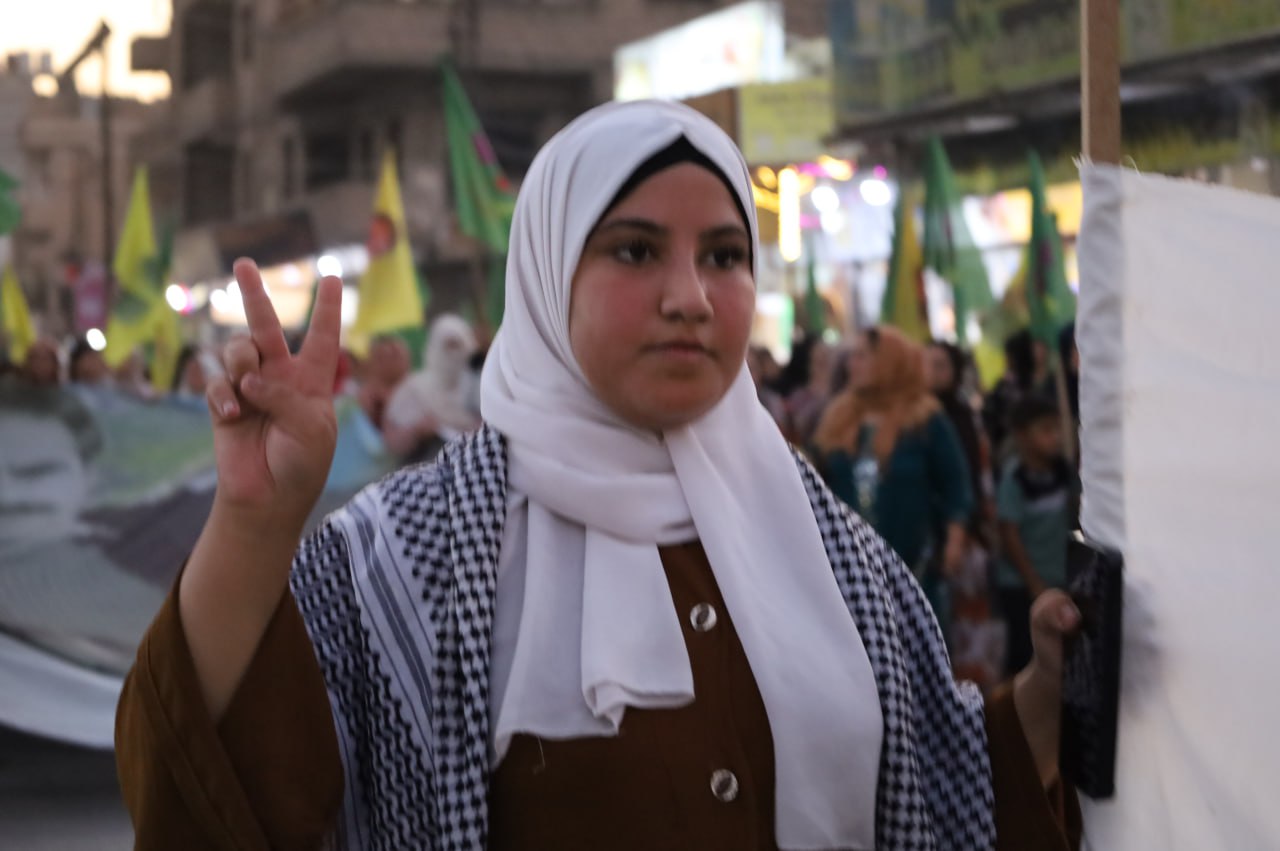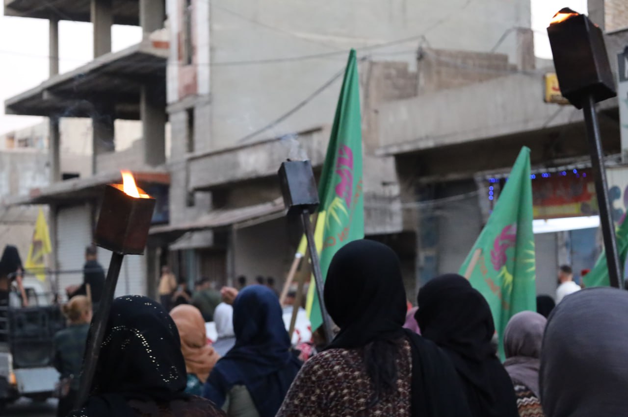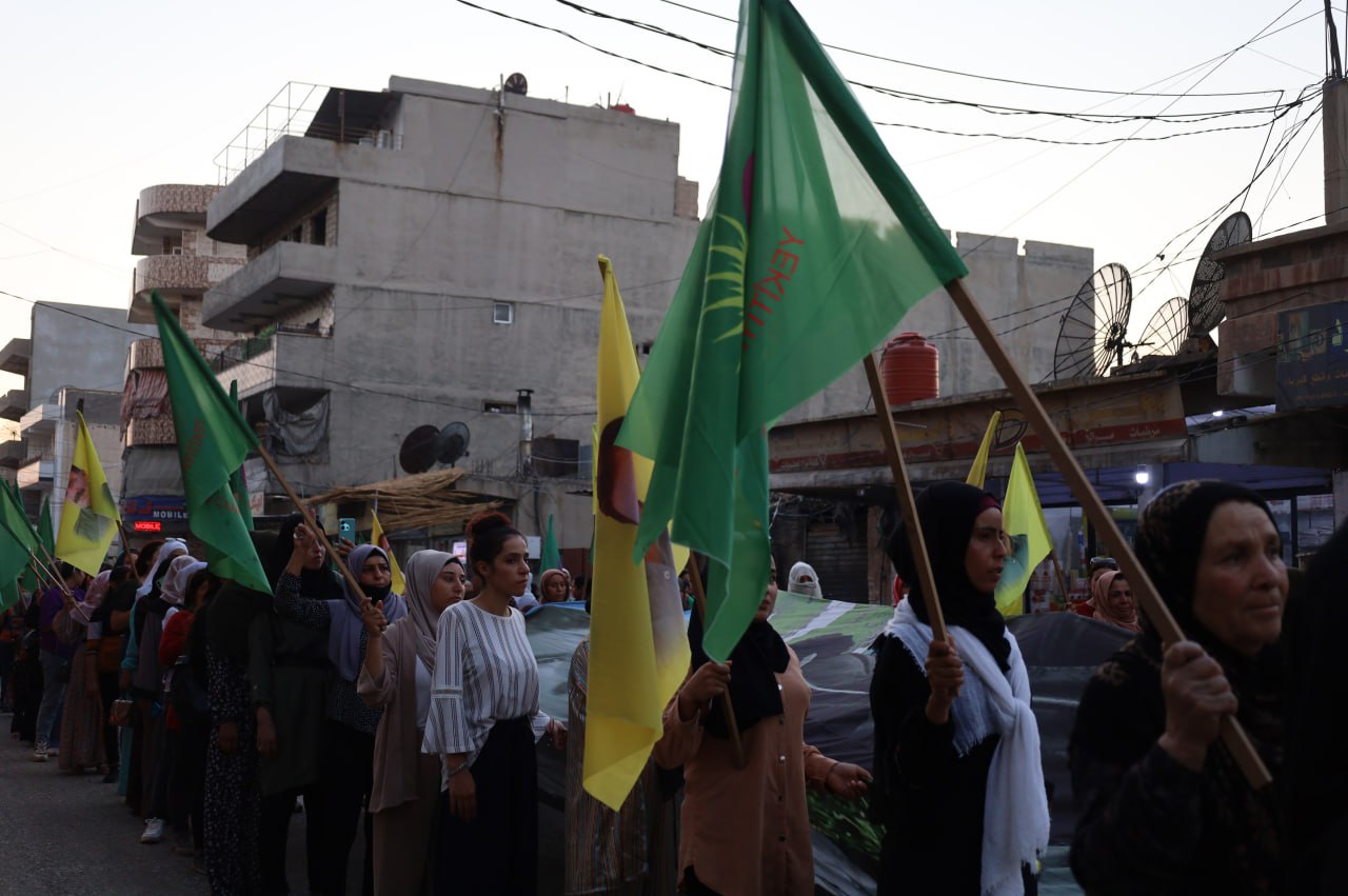 QAMIŞLO- Îro Yekitiya Jinên Ciwan ên Herêma Cizîrê ji bo azadiya fîzîkî ya Rêber APO û şermezarkirina polîtîkayên tecrîd û izolasyonê yên faşîst, dewleta Tirk a dagirker li ser Rêber APO tê meşandin û li hemberî vê yekê bêdengiya CPT û dewletên derve , li Qamişlo kom bûn û bi tevlêbûna sedan ciwan û jinan ciwan meşeke girseyî li dar xistin.