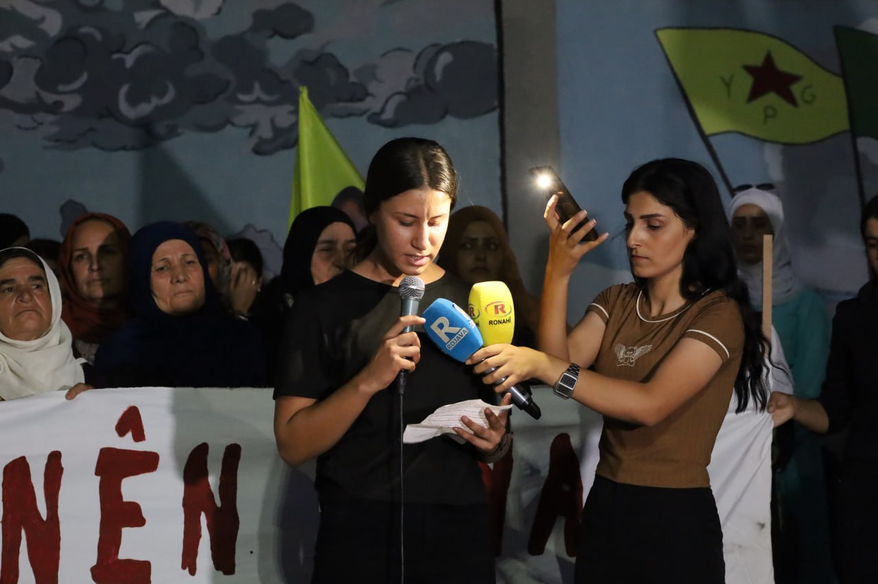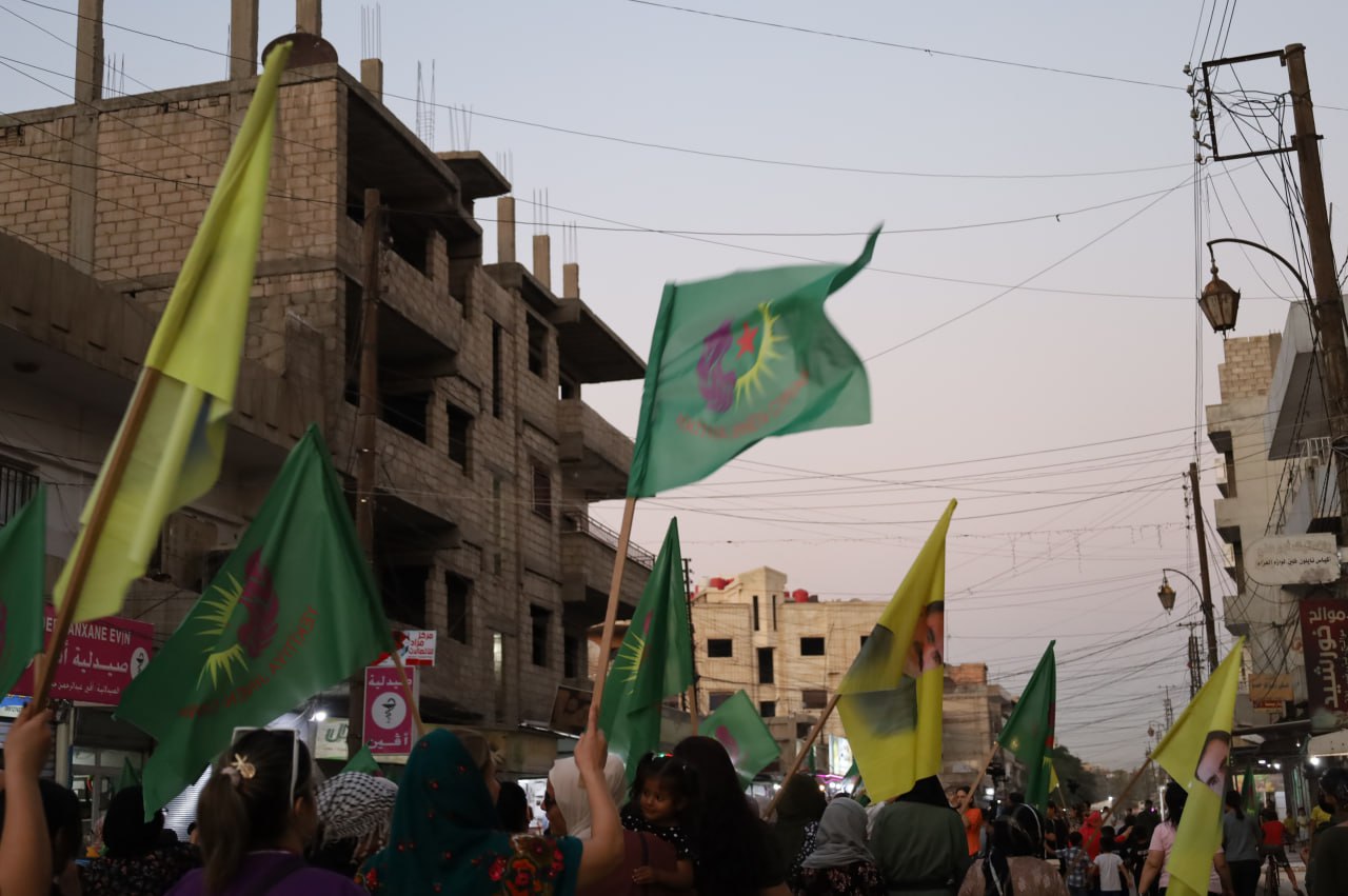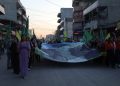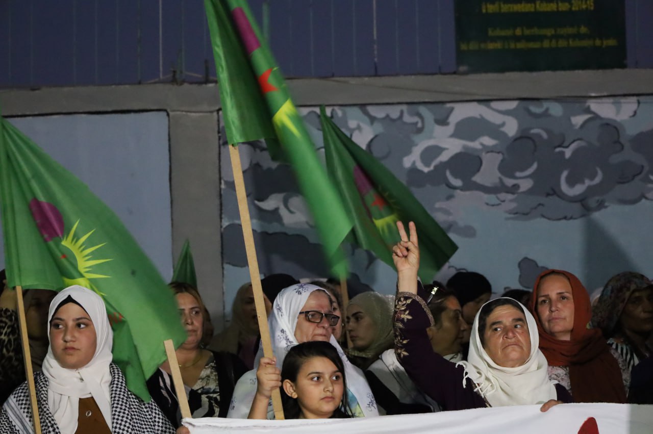 Di meşê de pankartên wêneyên Rêber APO û alên Yekîtiya Jinên Ciwan hatin rakirin û dirûşmên “Bê Serok Jiyan Nabe, Bijî Serok APO” hatin berzkirin.