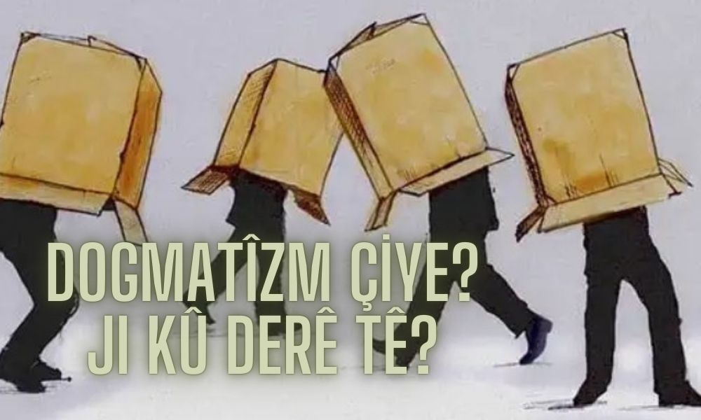 Em ê li ser dogmatîzmê rawestin. Dogmatîzm ew nêzîkatiya ku ji nîqaşan re girtî, ji lêpirsînê û rexneyan re girtî ne, ye. Yanî weke heye tu neçarî qebûl dikî. Li gorxwebûn e, mirov li gorî tiştên heyî qebûl dike. Dogmatîzm metoda raman ya li ser esasê ragihandinê ye, ne li ser esasê lêkolîn û aqil e. Yanî li ser esasê tenê tu radigihînî. Kalikê te ji bavê te re wiha dibêje, bavê te ji te re wiha dibêje. Bi vî rengî berdewam dike. Tê de lêkolîn, lêgerîn, lêpirsîna aqil tune, yanî di ezmûna aqil re derbas nabe. Her wiha tiştên ku esas tê qebûlkirin, jiberkirin e, qebûlkirin û ragihandin esas e. Ji bo vê dogmatîzm, rê li pêşiya guhertinê digire.