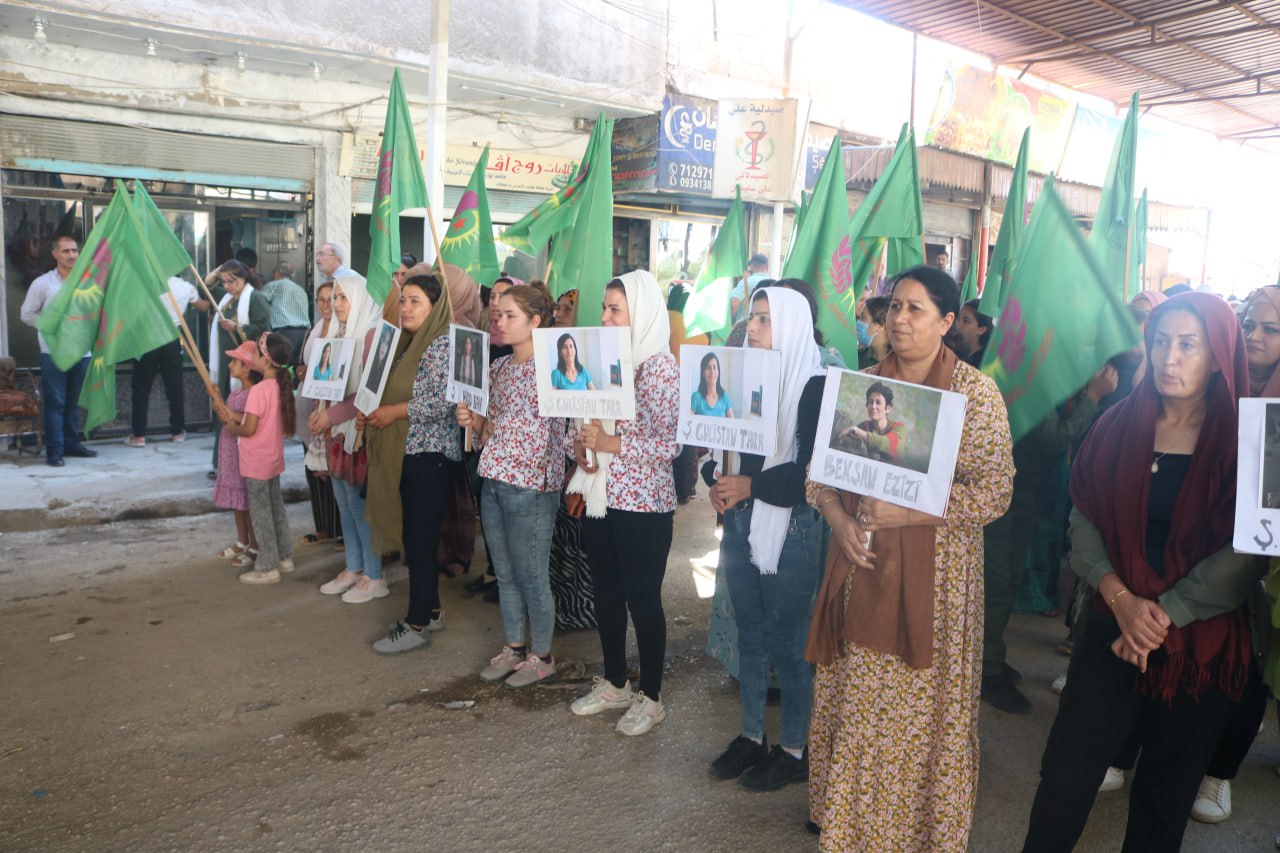 DIRBESİYÊ– Yekîtiya Jinên Ciwan li bajarê Dirbêsiyê îro ji bo şermezarkirina kuştina Jinan meşekî girseyî lidarxist.