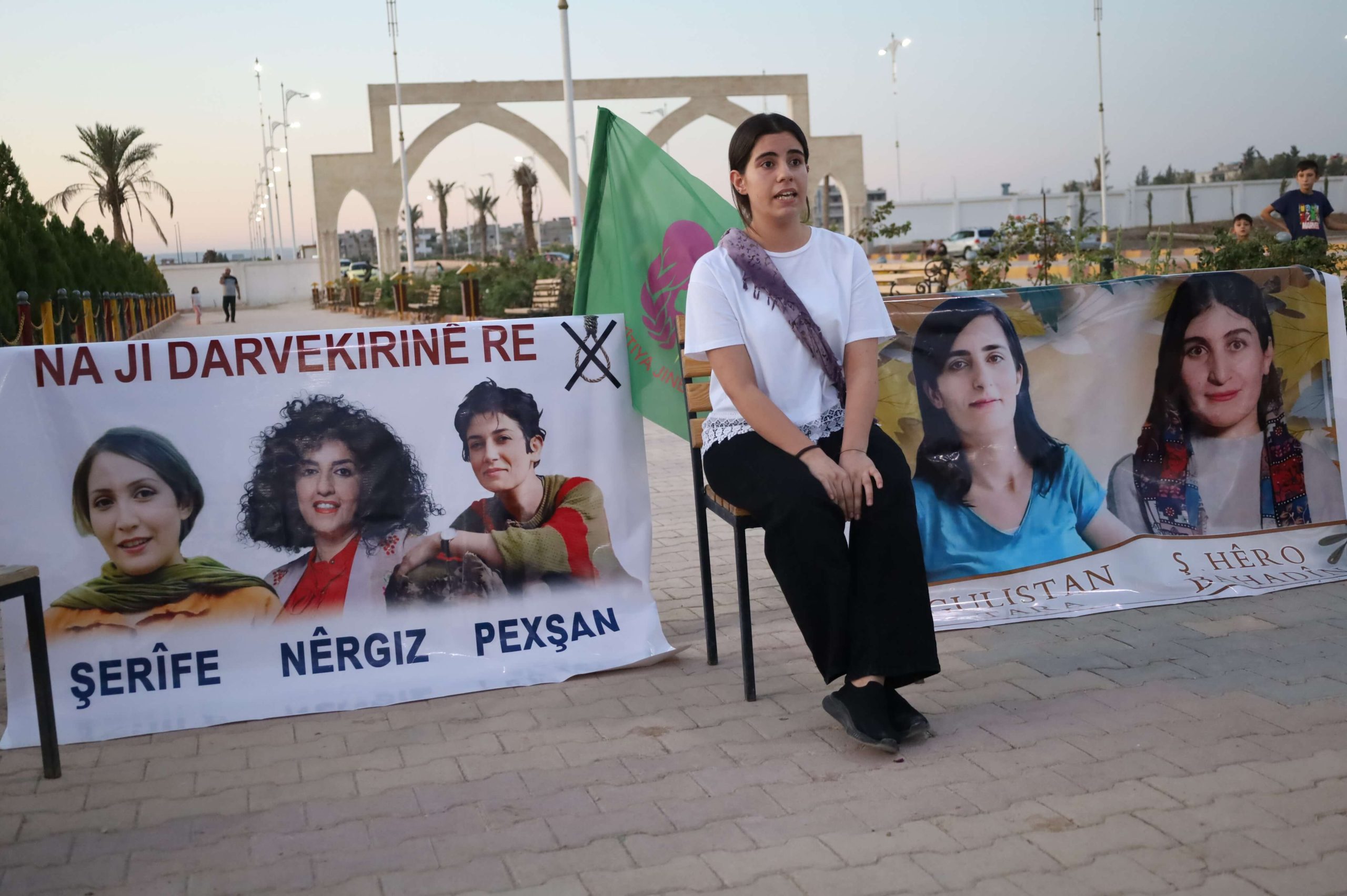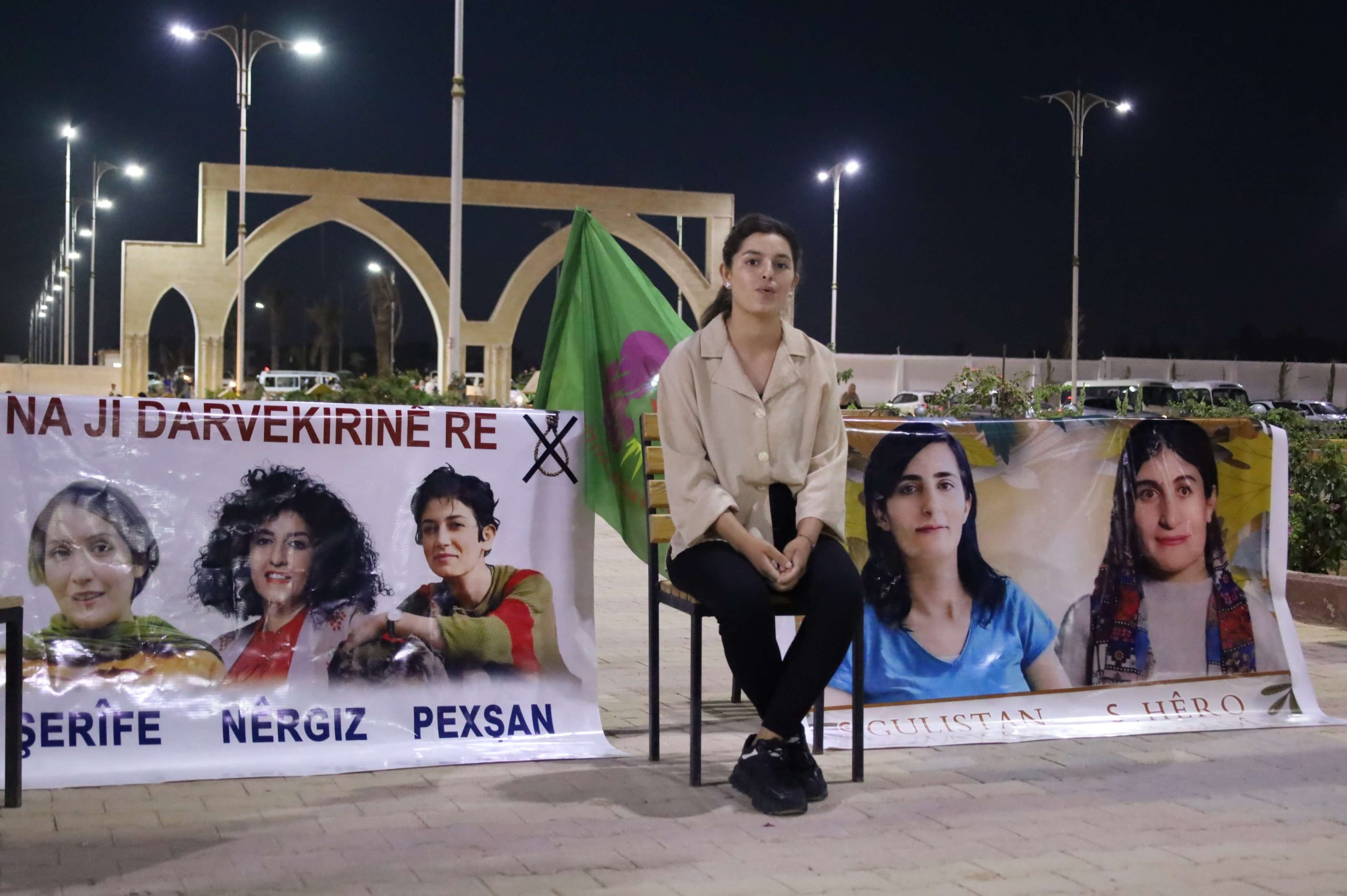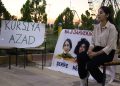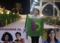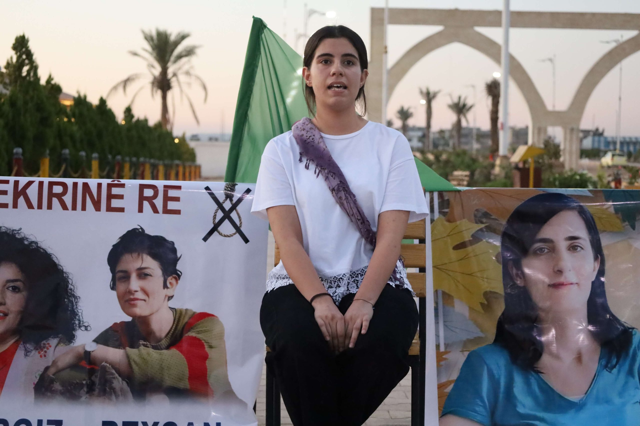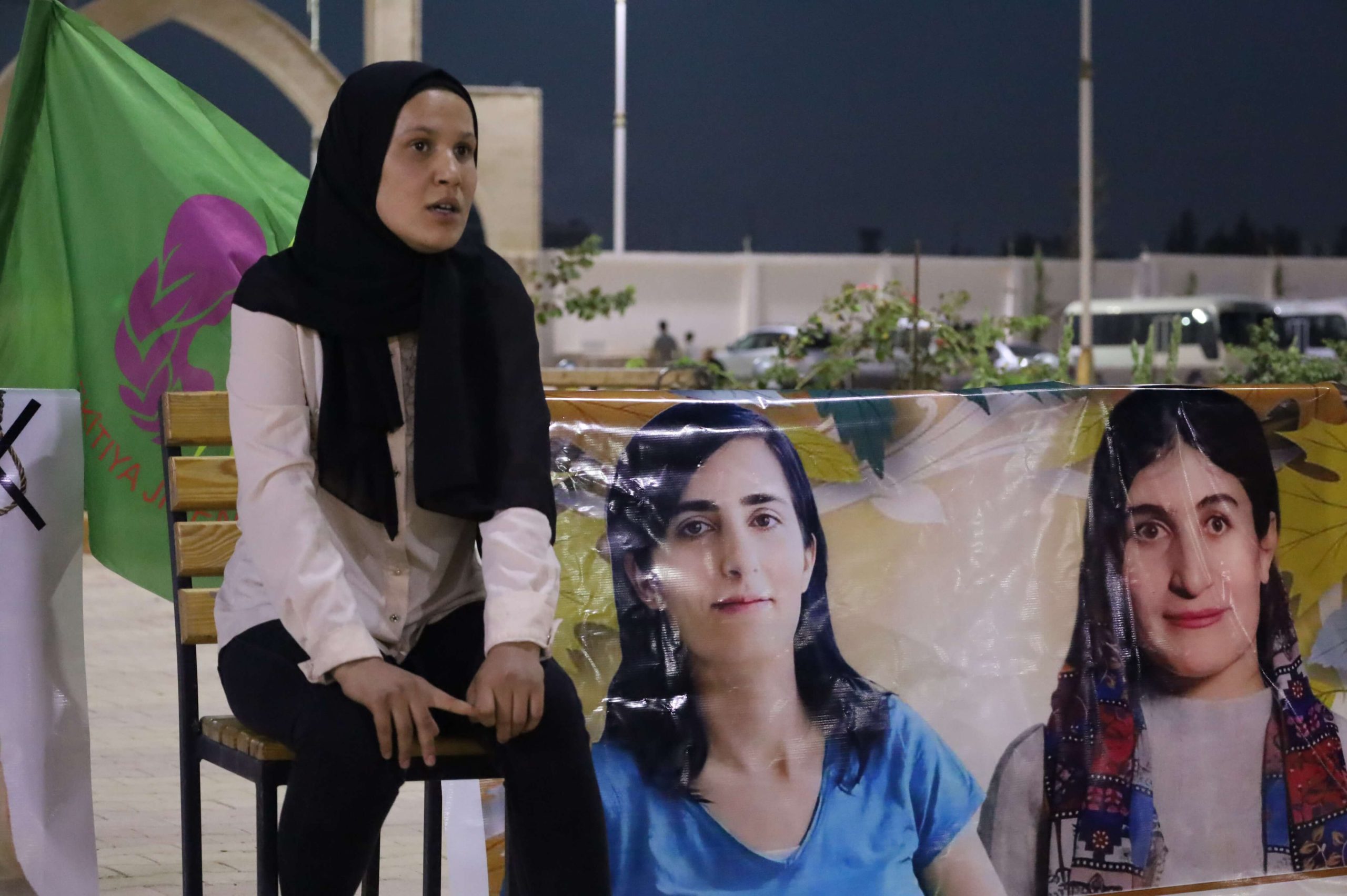 Jinên Ciwan pankartên aktîvîstên kurd yên ku li ser wan biriyara darvekirin hat girtin hildan. Yek bi yek, jinên ciwan li ser “kûrsiya azad” rûniştin û helwesta xwe li beramberî darvekirina jinan anîn ser ziman.