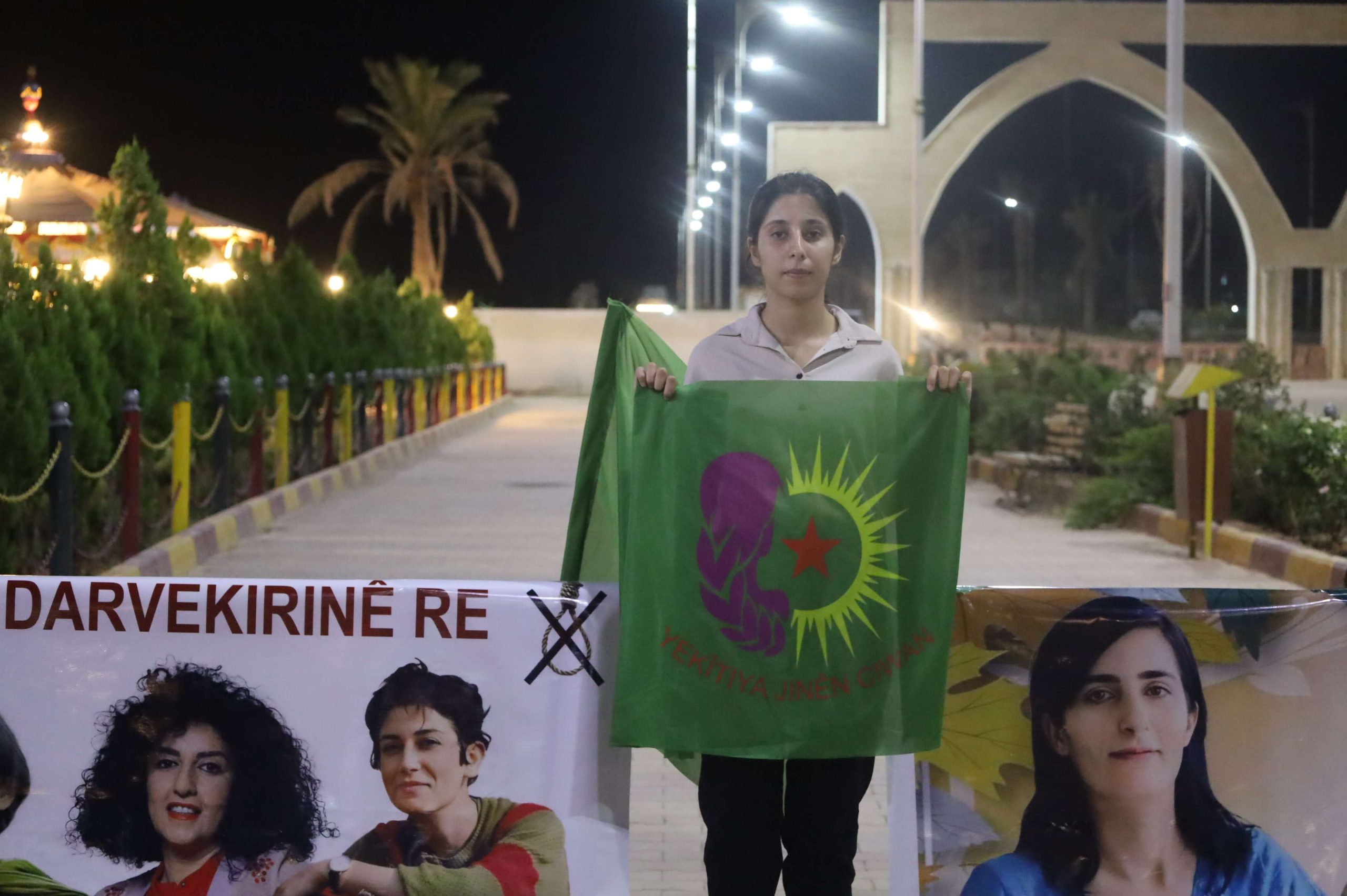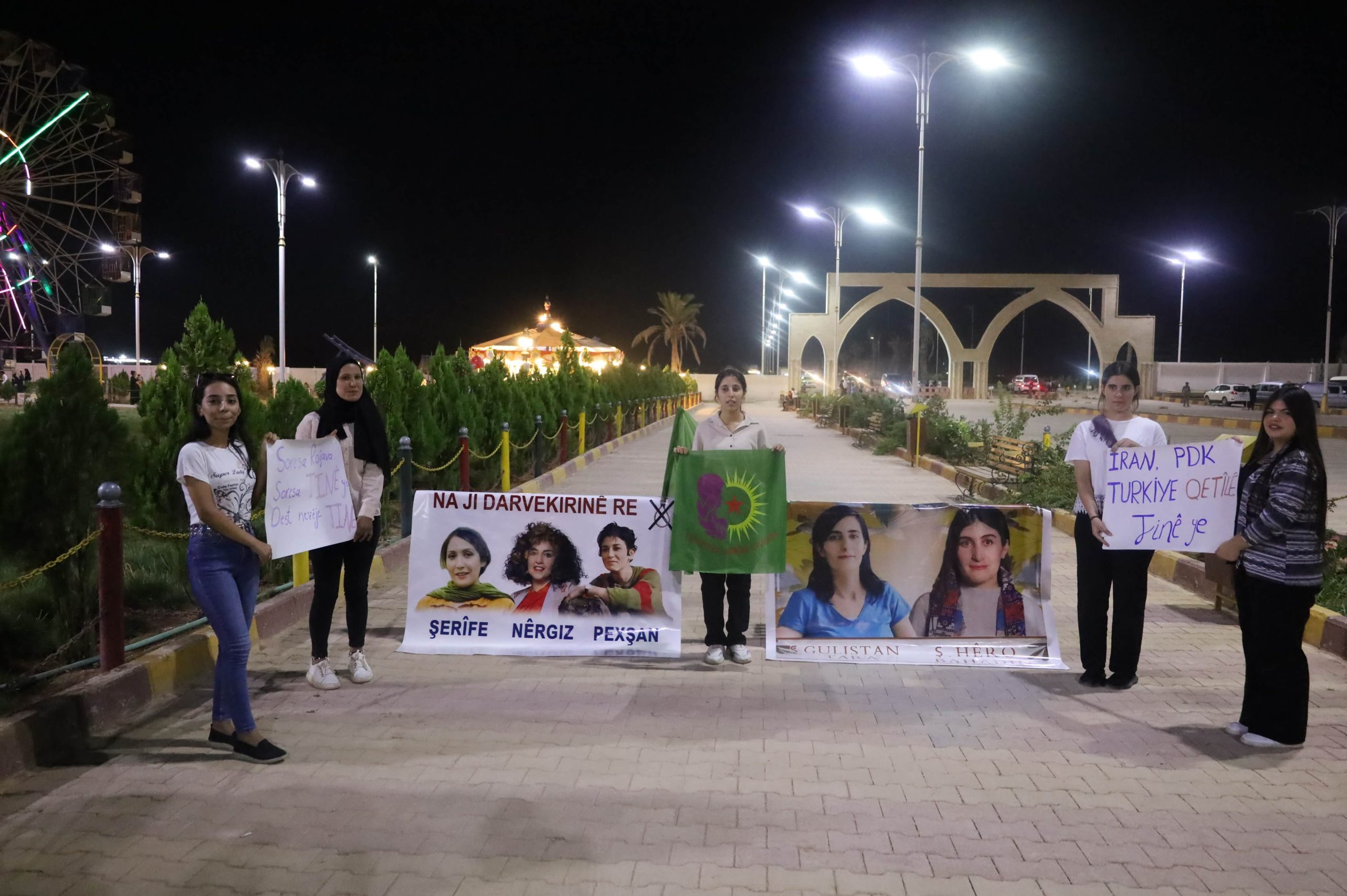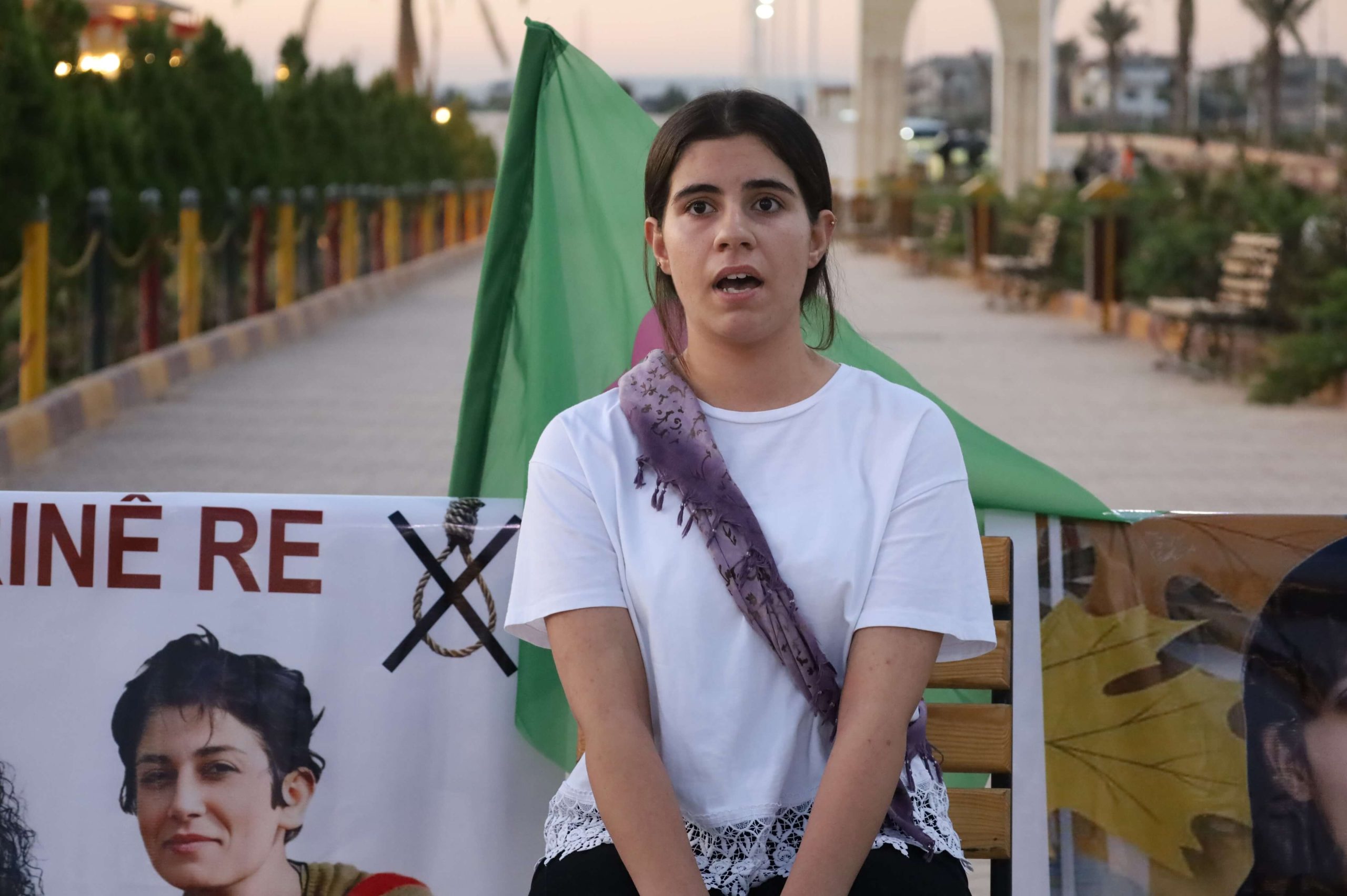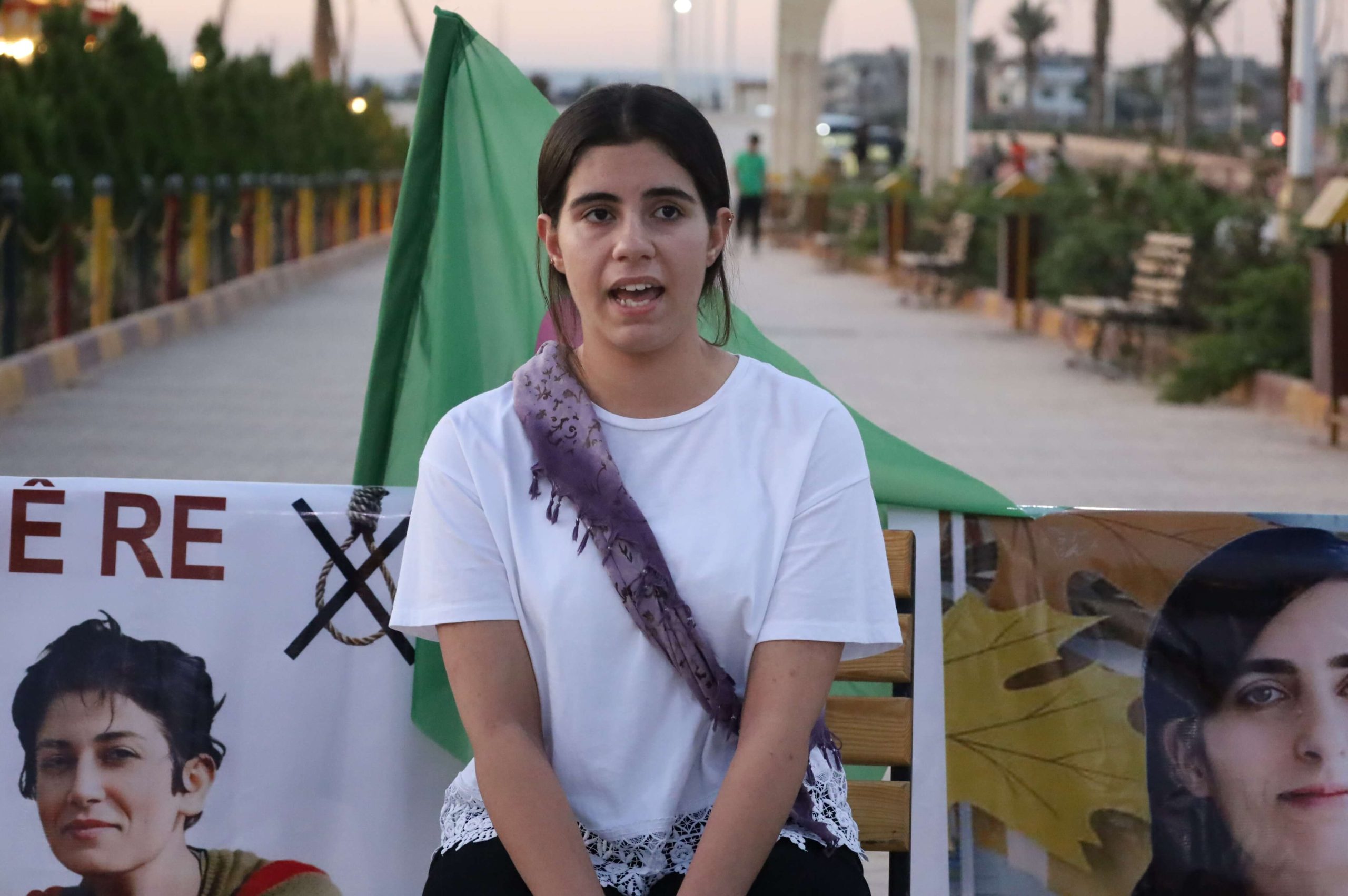 Di dawiyê de jinên ciwan bi zimanên farsî, turkî, erebî, kurdî û înglîzî dirûşmeya “Jin, Jiyan, Azadî, Serbixe Azadî” berz kirin.