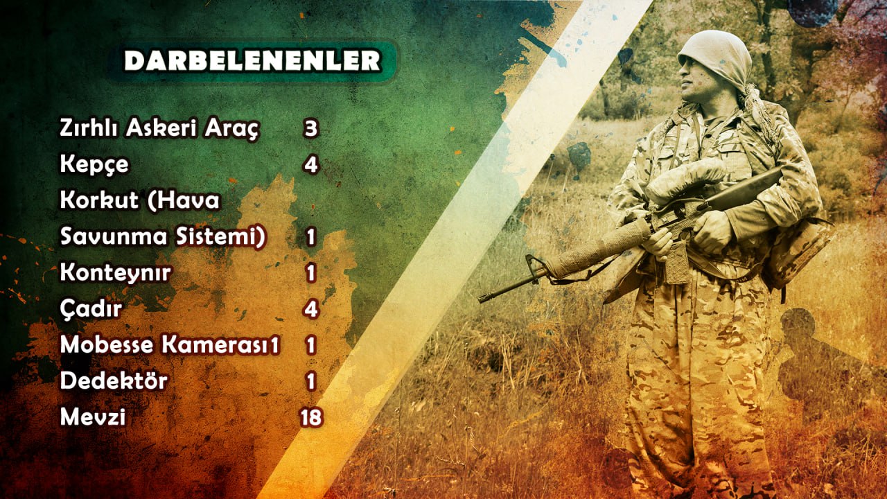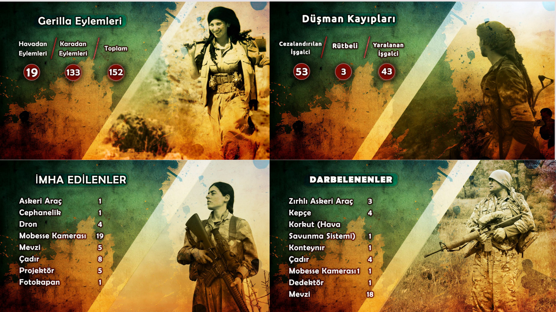 Artêşa Tirk a dagirker li gel bombardûman û operasyonên bêhejmar ên li Bakurê Kurdistanê her wiha 90 carî Herêmên Parastinê yên Medyayê bi teqemeniyên qedexekirî bombe kir û sûcên şer kir. Hêzên me êrîşên artêşa Tirk a dagirker ku xwe dispartin teknîkê têk birin, ruhê fedaî yê Apoyî bilind kirin, di taktîk, çalakî û rêbazên gerîla de xwe kûr kirin, bi vî rengî bersiv dan û gelek çalakî kirin.