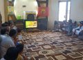 DÊRA ZORÊ – Li Dêra Zorê ev çend roj dawî Ciwanên Şoreşger pêşandana sînevîzyon li dar dixi. Her roj ciwan û şêniyên vedixwînin ku bi hev re sinevîsyonekê temaşe bikin. Sînevîzyon têkildarî komploya navneteweyî ya li dijî Rêber APO ye. Îro ji Ciwanên li El-Behra ( rojhilatê Dêra Zorê) pêşandaneke pêşkêş kirin.