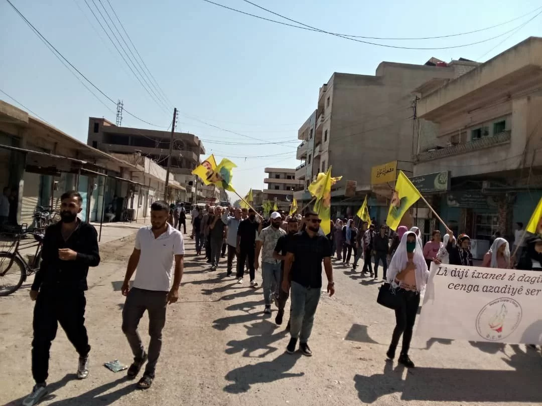 AMÛDÊ– Bi pêşengiya Tevgera Ciwanên Şoreşger û Yekitiya Jinên Ciwan a Amûdê di çarçoveya pêngava “Ji Rêber APO re Azadî, Ji Pirsgirêka Kurd re Çareserî” de bi dirûşmeya “Li dijî Îxanet û Dagirkeriyê Emê Şerê Azadiyê Serbixin” meşek girseyî hate lidarxistin.