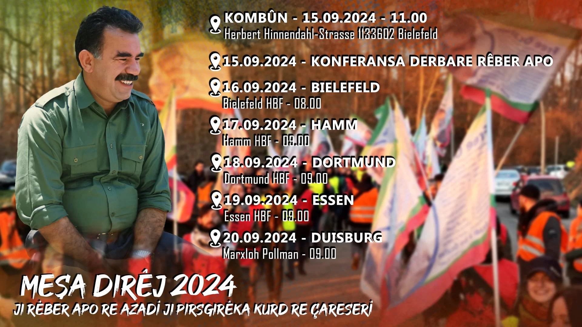 BIELEFELD – Ciwanên Kurdistanî û Enternasyonalîst ji bo azadiya fîzîkî ya Rêber APO, wê di navbera 15-20’ê Îlonê de li Elmanyayê bi şîara “Ji Rêber APO re Azadî, Ji Pirsgirêka Kurd re Çareserî” çalakiya Meşa Dirêj li dar bixin.