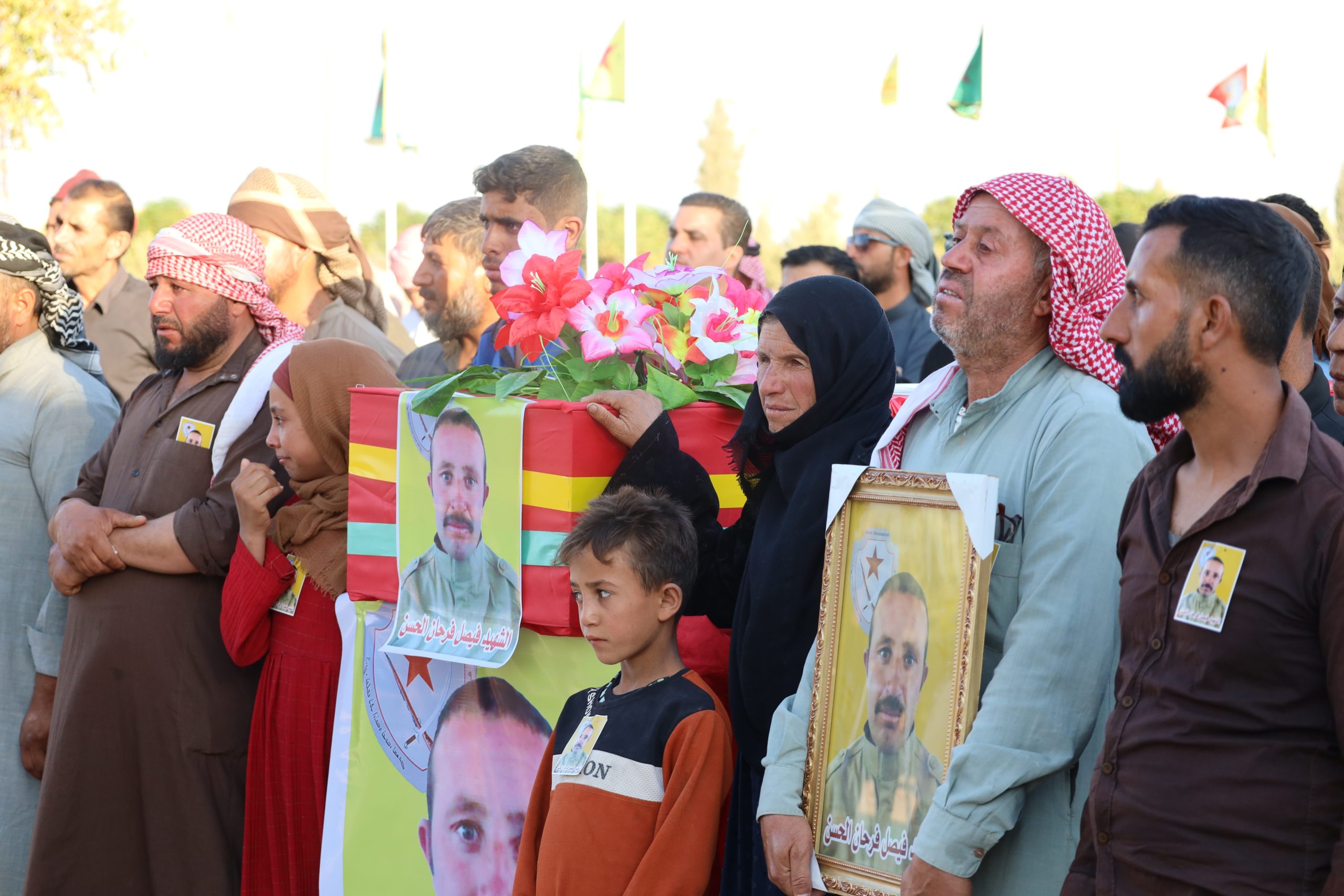 HESEKÊ- Şêniyên bajarê Hesekê û bajarokên wê cenazeyê şervanê Hêzên Erka Xweparastinê şehîd Feysel Ferhan El Hesen ê ku di encama nexweşiyê de di 11.09.2024ʹan de şehîd bûbû, li Goristana Şehîd Dijwar ê bajêr oxir kir.