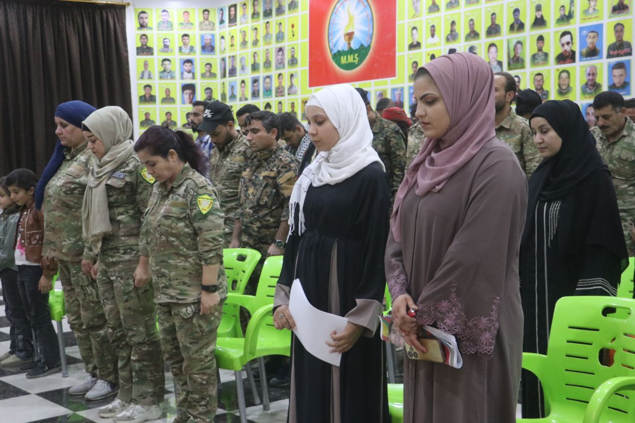 Di merasîmê de bi dehan nûnerên Meclisa Leşkerî ya Tebqayê, Meclisa Malbatên Şehîdan, endamên Tevgera Ciwanên Şoreşger ên Sûriyeyê û Yekitiya Jinên Ciwan beşdar bûn.