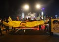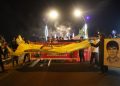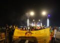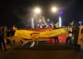 Li têketa bajêr, meş rawestî. Li wir endamê ciwanên şoreşger a Reqayê Mehmûd El Efer daxuyaniyek xwend.