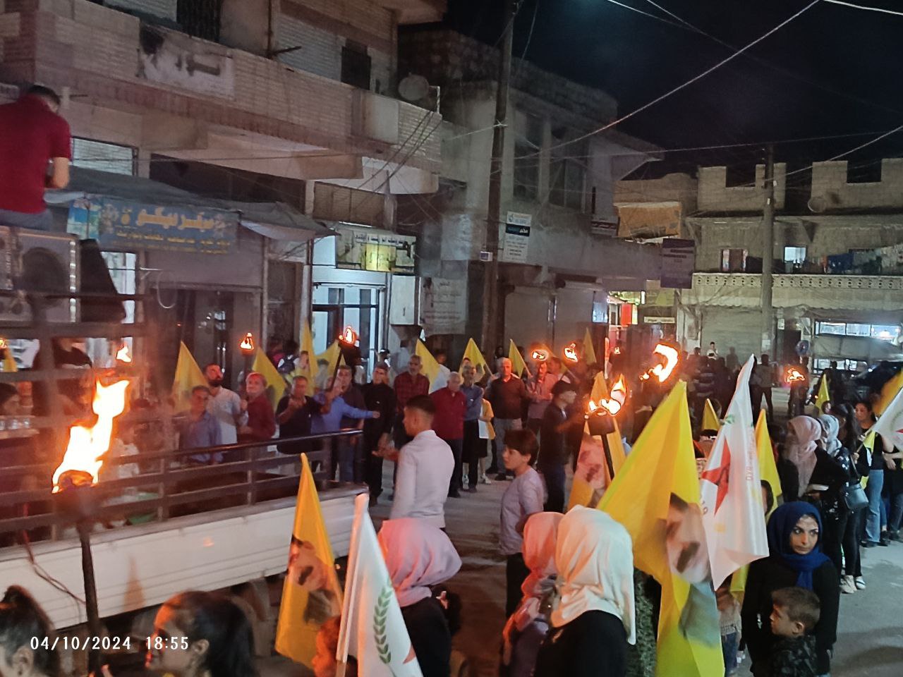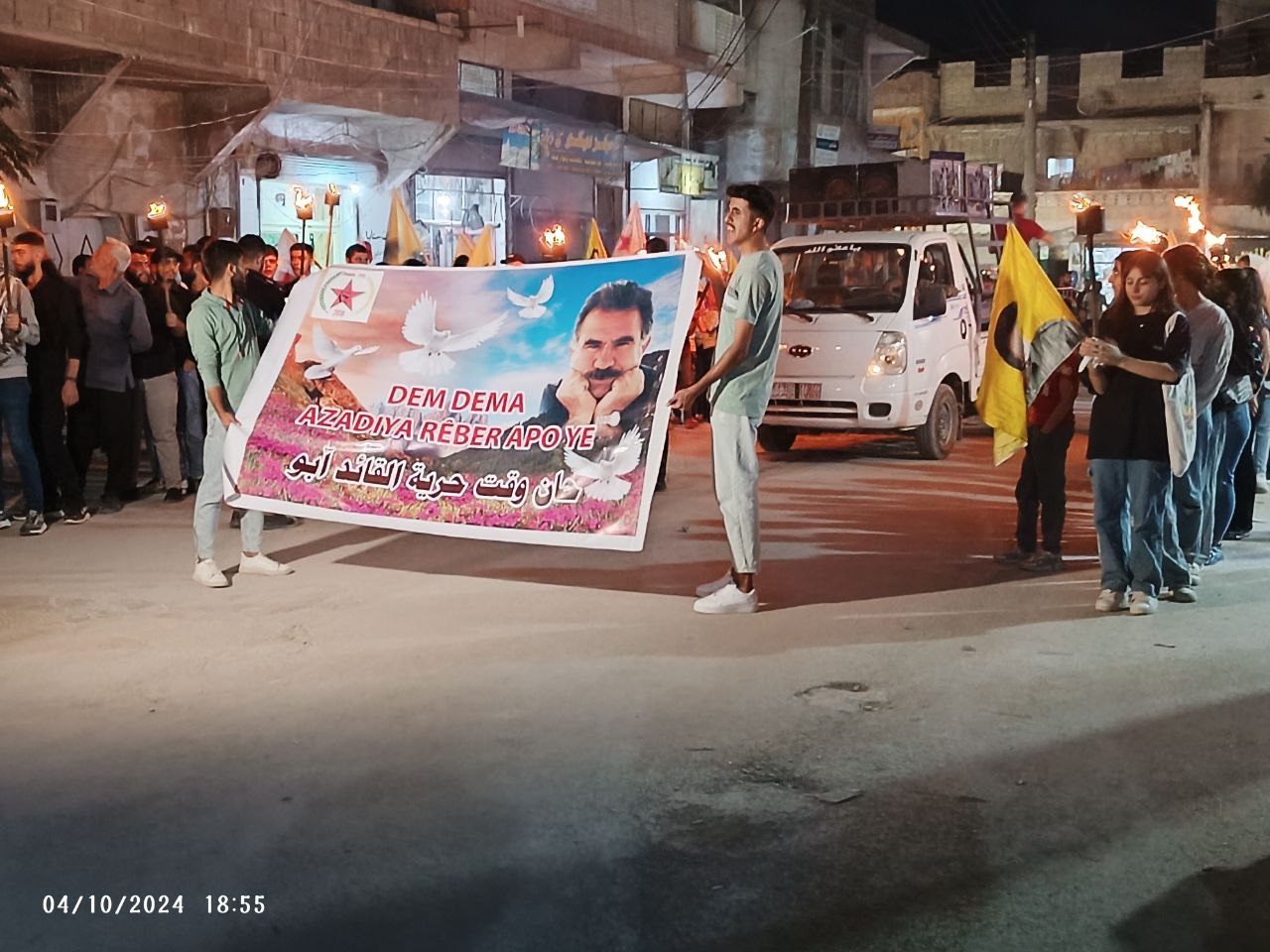 HELEB- Komploya Navneteweyî ya 9’ê Cotmehê ya li dijî Rêber APO ku bi pêşengiya endamên Meclîsa Ciwanên PYD’ê (Partiya Yekîtiya Demokratîk) li bajarê Helebê û bi beşdariya hemû ciwanên Helebê hate lidarxistin, bi meşeke meşaleyî hate protestokirin.