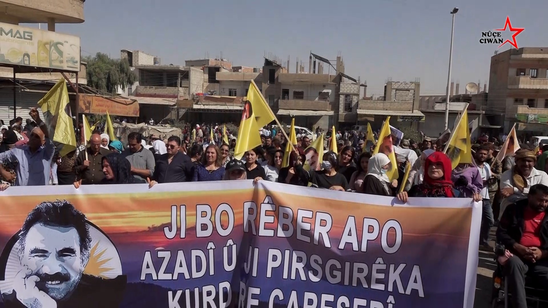Al û pankartên Rêber Apo hatin hildan û dirûşmeyên ji bo azadiya fîzîkî ya Rêber Apo hatin berz kirin.