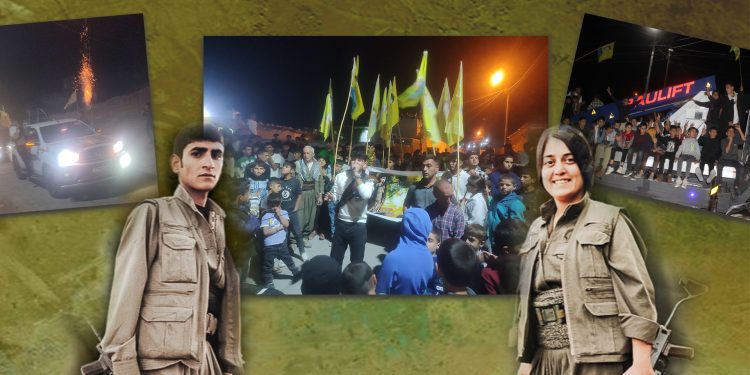 Bi saetan konvoya xemilandî derdora Wargehê geriya û ji her erebe sloganên ‘Şehîd Namirin’ û ‘Bê Serok Jiyan Nabe’ hatin berzkirin.