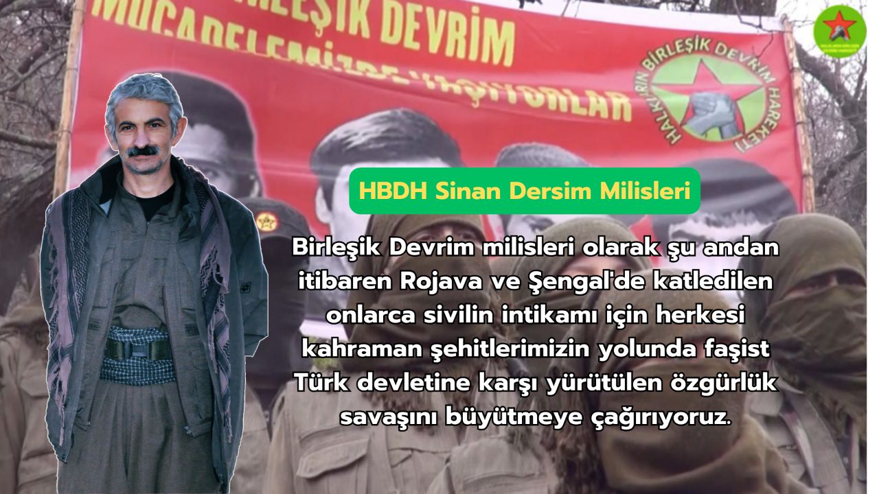 Têkildarî çalakiyên ku ji aliyê Milîsên Sînan Dersim ên Tevgera Şoreşa Yekbûyî ya Gelan (HBDH) ve hatine lidarxistin, ev tişt hatin diyarkirin: