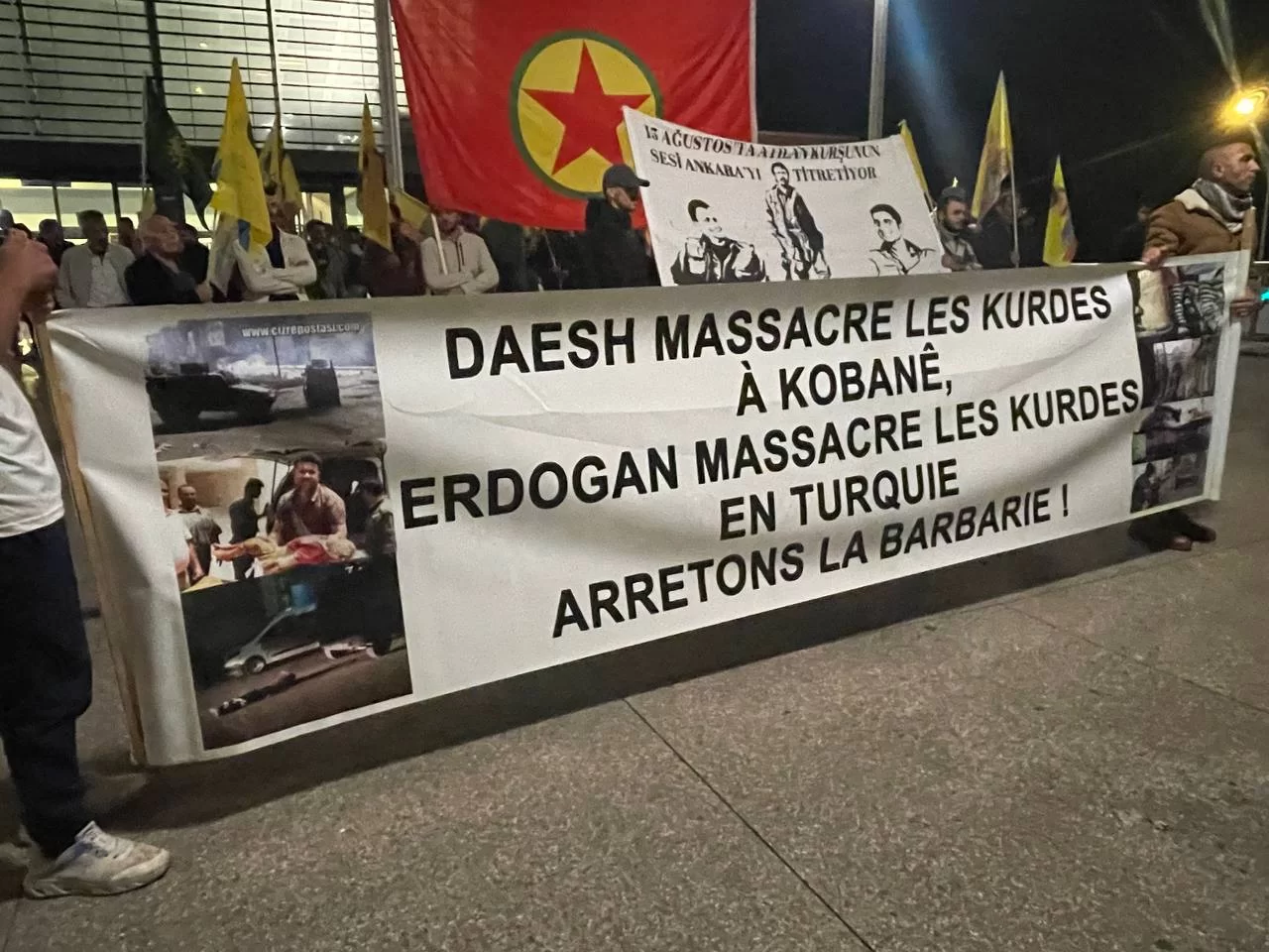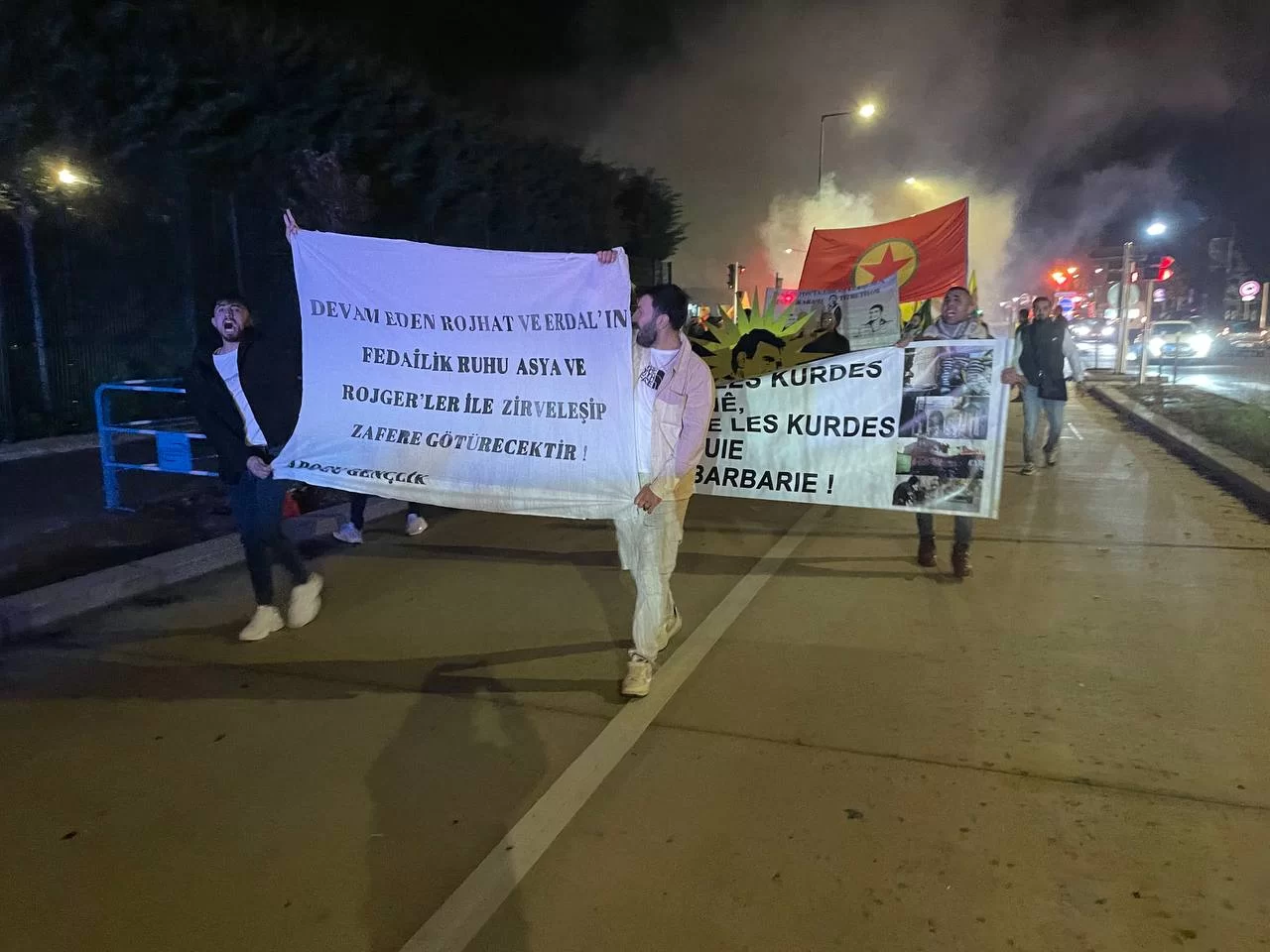 Ciwanan meşale pêxistin û bi sloganên “Bijî Serok APO” û “Em PKK’ê ne” kolanên Grîgny tijî kirin. Ciwanên ku bi meşale û dûmanê nêzî saetekê meşiyan, hatin Gara Trenê ya Grigny û li vir daxuyanî dan.