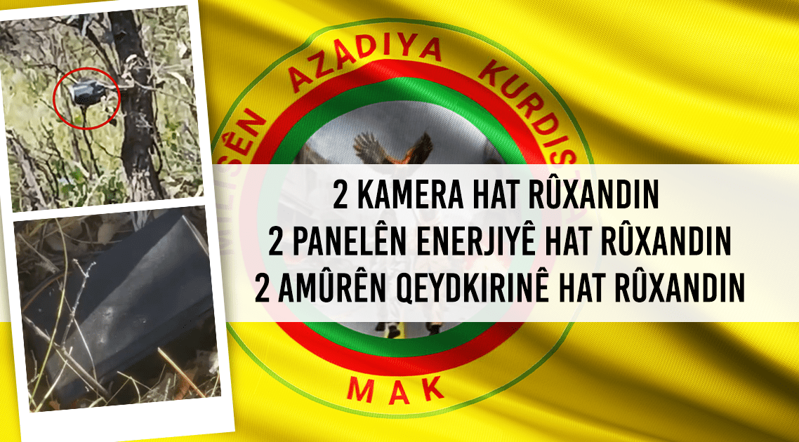 “Teknîka artêşa Tirk yên li qadên gerîla hatin dîtin ji aliyê milîsên me ve hatin hedefgirtin. Di encama çalakiyê de 2 Kamera, 2 Panelên Enerjiyê û 2 Amûrên Qeydkirinê yên li herêmê hatibûn tesbîtkirin ji aliyê hêzên me ve hatin rûxandin. Em bang li hemû gelê xwe yê welatparêz, di serî de gelê Amed û Botanê dikin ku êrîşên teknîkî yên dagirkeran têk bibin û li dijî êrîşên artêşa Tirk a hov ên li dijî gerîlayên Azadiyê bi gerîla re bibin yek.”