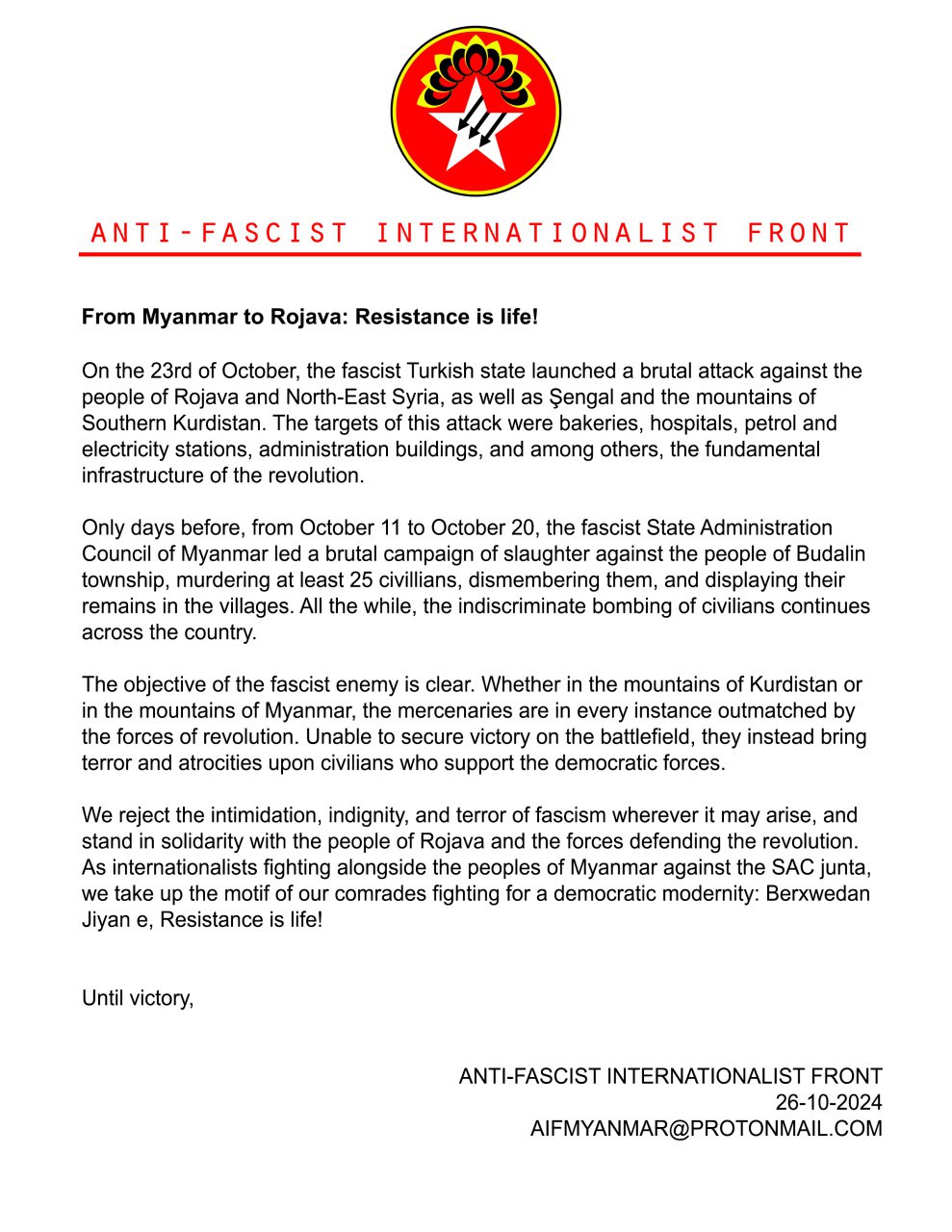 NAVENDA NÛÇEYAN – Daxuyaniya rêxistina Antî-Faşîst-Internasyonal a Myanmarê (AIF):