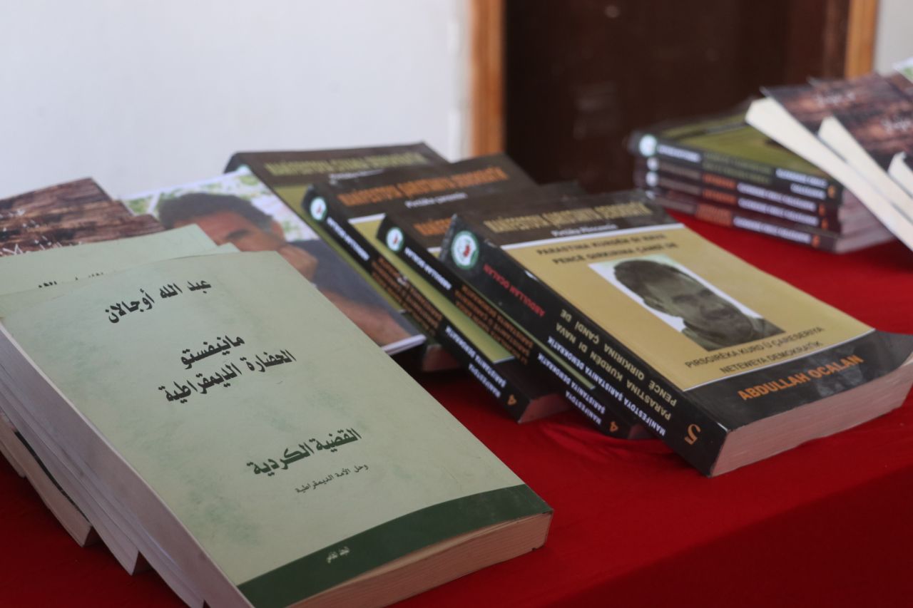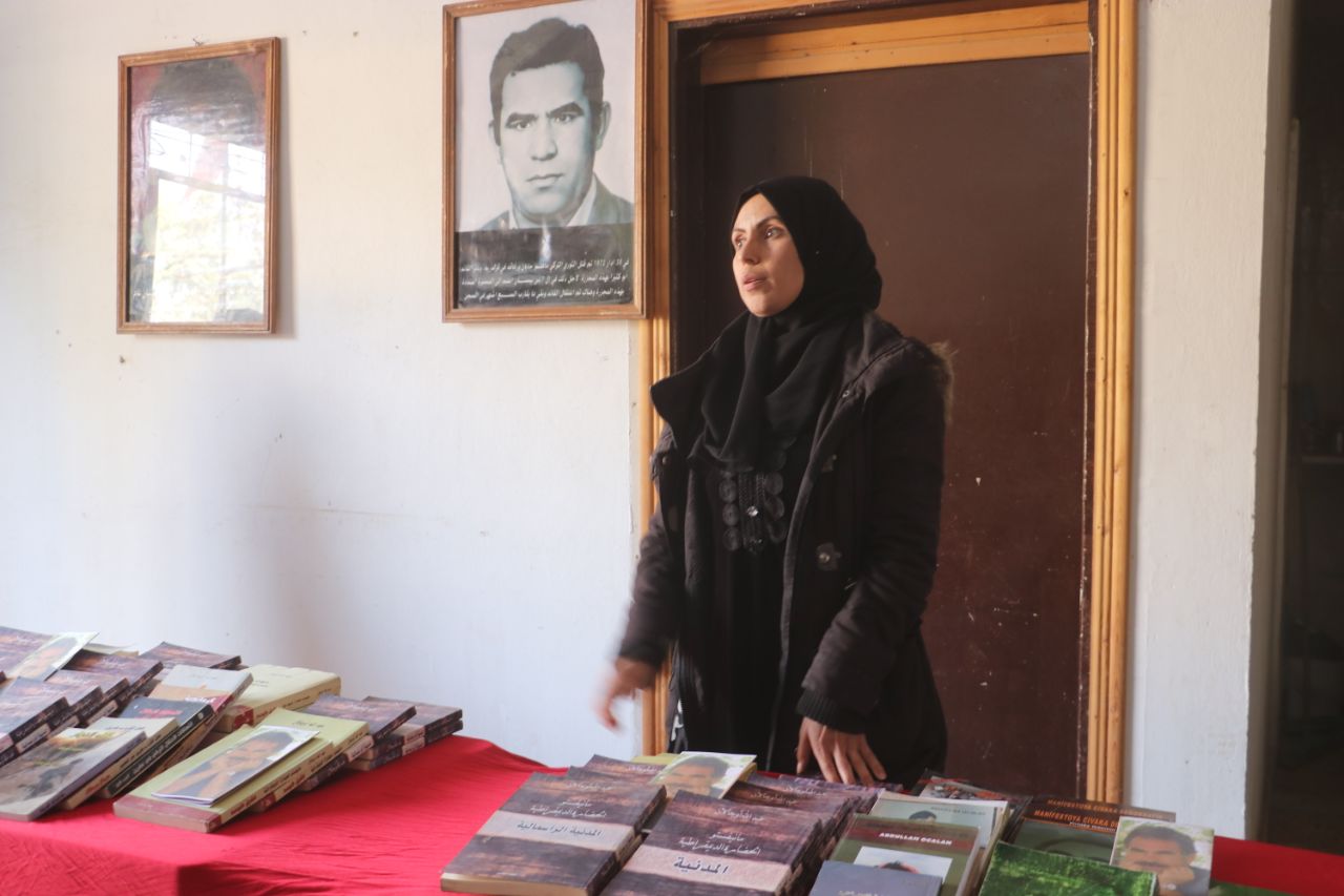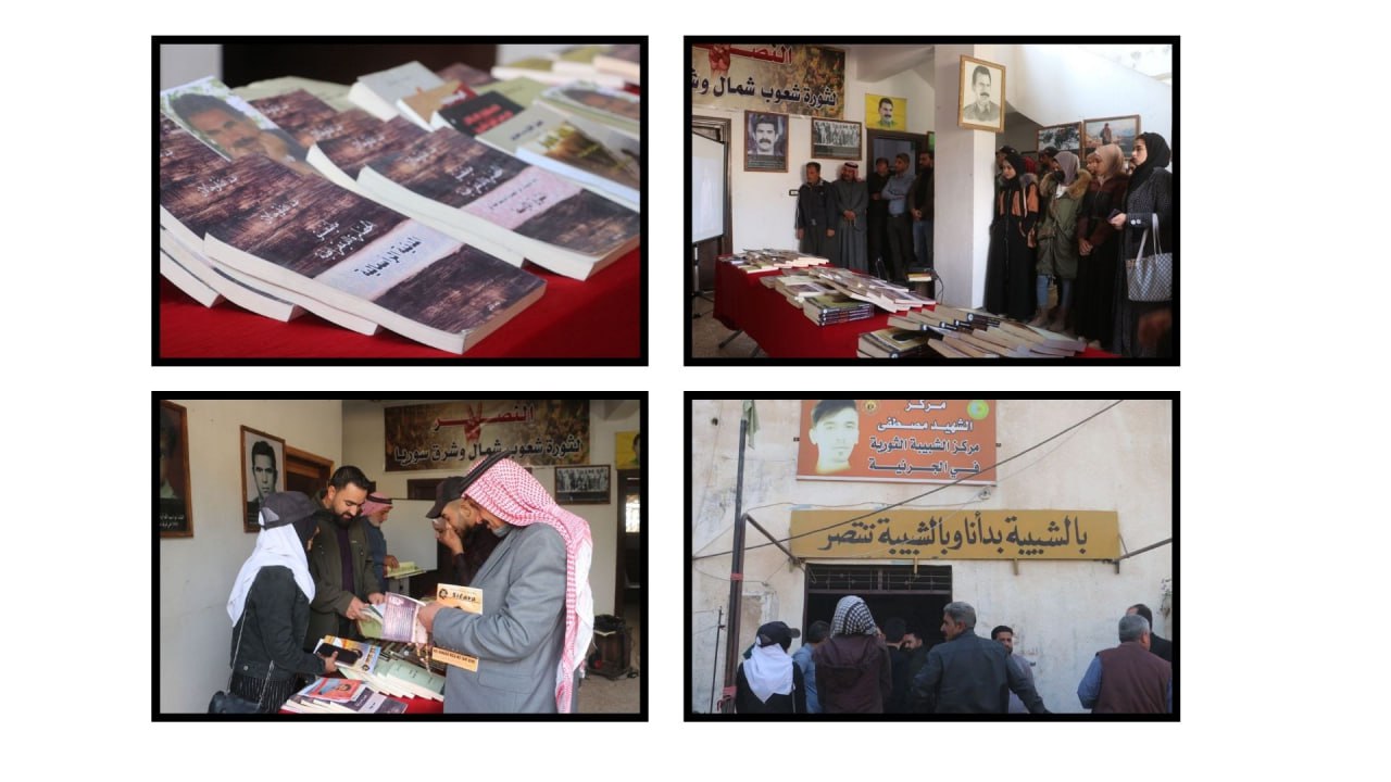 Îro danê sibê Yekîtiya Jinên Ciwan a bajarê li El-Cerniyê ya gundewarê kantona Tebqayê di bin diruşmeya “Ji Rêber APO re azadî û ji pirsgirêka kurd re çareserî’’ pêşangehek ji wêne û pirtûkên Rêber APO vekirin.