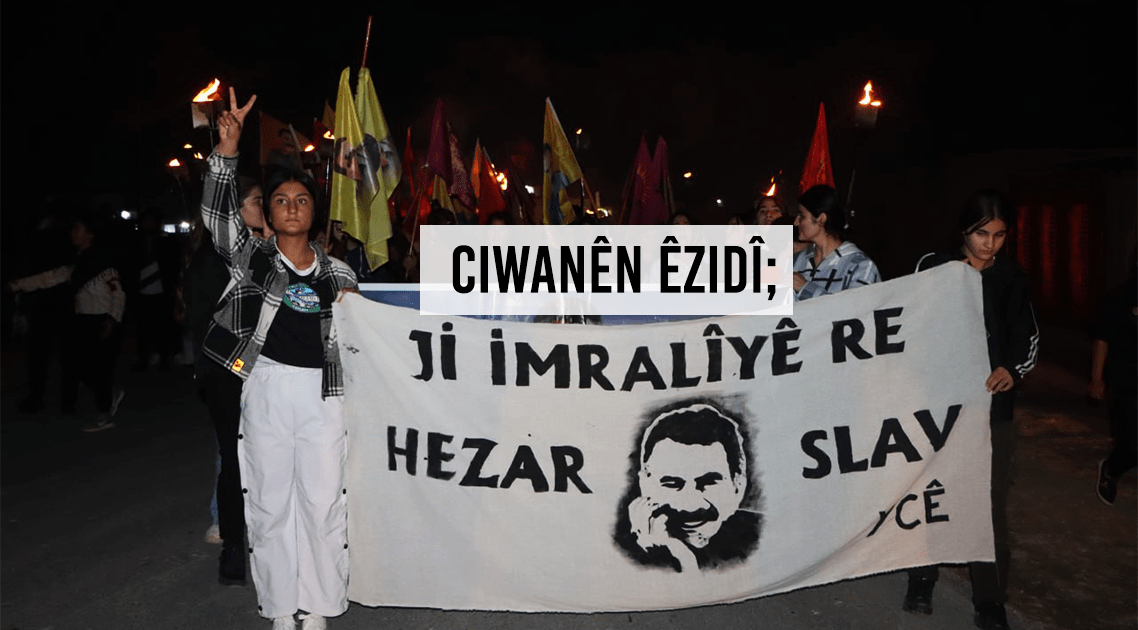 “Li ser navê Yekîtiya Ciwanên Êzidxanê û Yekîtiya Jinên Ciwanên Şengalê em berxwedaniya Rêber APO ya ku 26 sala di nava Îmraliyê de silav dikin. Weke hûn jî dizanin 3 sale tu agahî ji Rêbertî nebû. Beriya demekî hevditin bi Rêber APO re hate kirin û bi silavên Rêbertî gihaşt me. Em jî weke ciwanên Êzidî, weke ciwanên Şengalê silavên wî bi dilekî germ, bi ruhê ciwantiye pêşwazî dikin.”