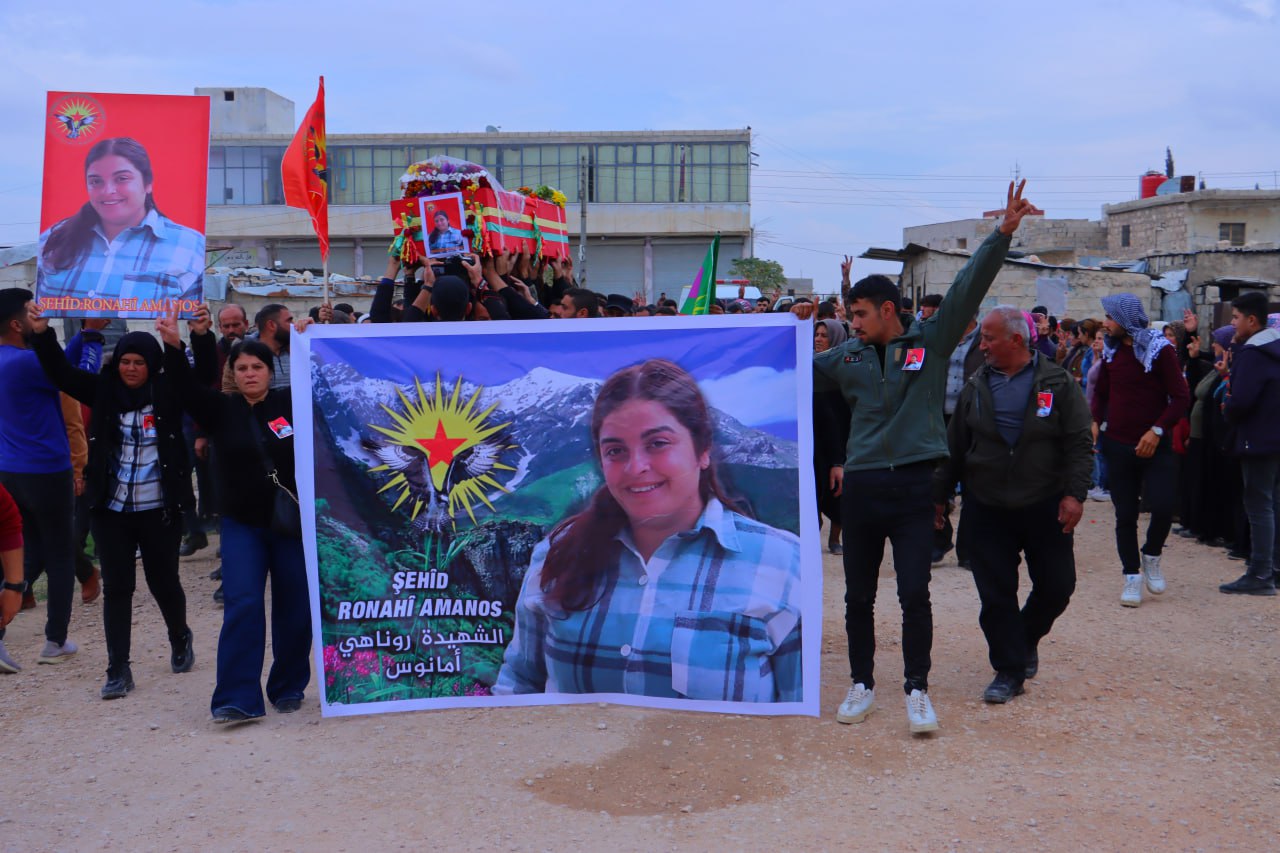 ŞEHBA – Şehîdê Tevgera Ciwanên Şoreşger Ronahî Amanos ku di roja 15’ê Mijdarê de di encama krîza Dil de şehîd ketibû. Îro li Kantona Şehba li goristana Şehîd Zozan Amanos ê ku dikeve navçeya Fifînê bi coş û kelecanekî mezin gelê Efrîn û şêniyên Şehba wê sipartin nava dil û mejiyê xwe.