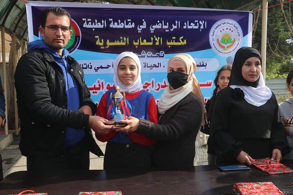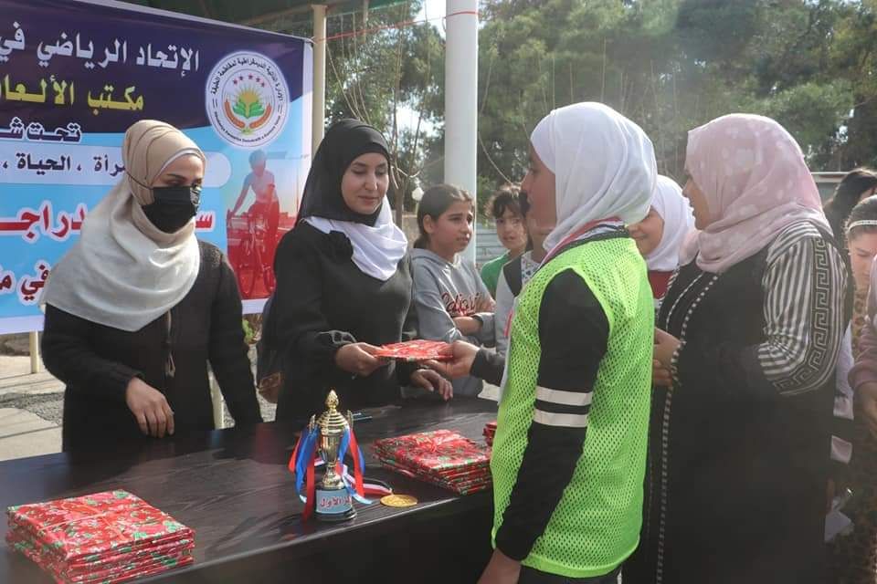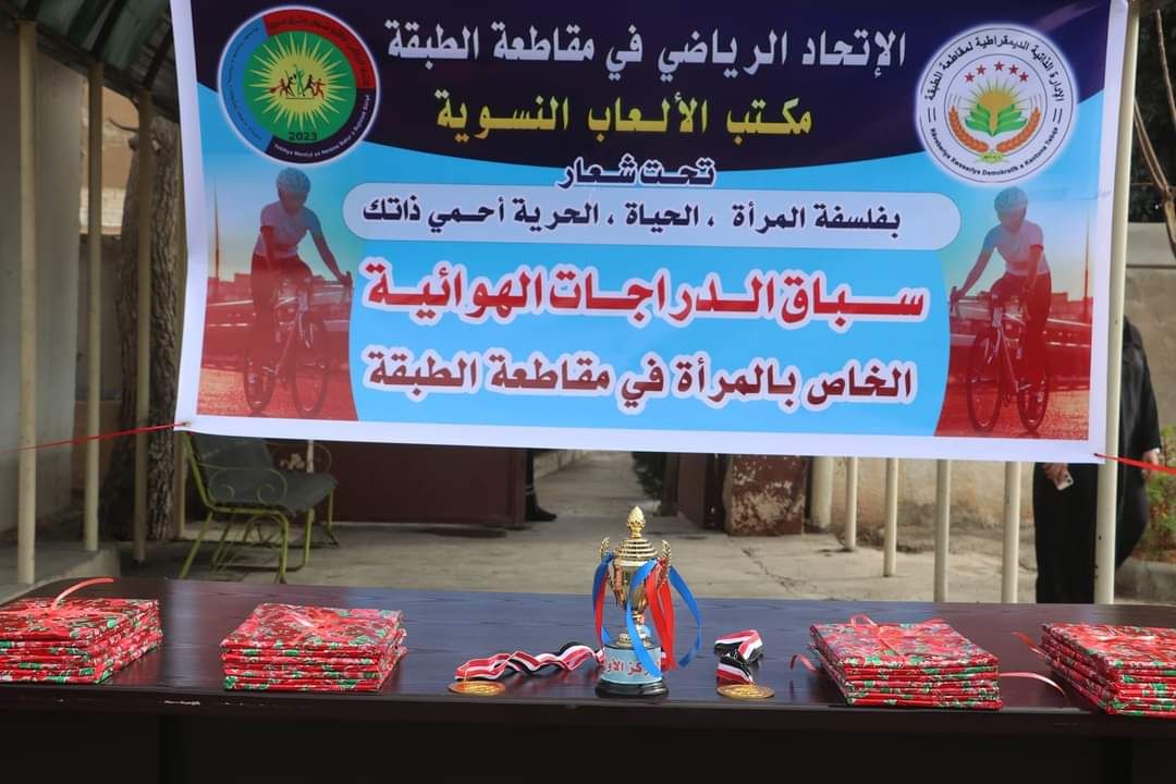 TEBQA- Buroya Lîstikên Jinan a girêdayî Meclîsa Werzîşê ya navçeya Tebqayê, îro piştî nîvro, di çarçoveya çalakiyên li dijî tundiya li ser jinan de, bi dirûşma “Bi felsefeya jin, jiyan, azadî, xwe biparêzin,” pêşbirka duçerxeyan a jinan li dar xist.