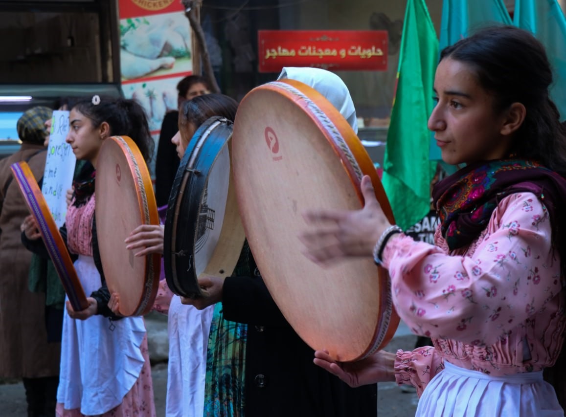 NAVENDA NÛÇEYAN – Di çarçoveya 25’ê Mijdarê de jinên ciwan bi gelek rêxistinên jinan re beşdarî çalakiyan bûn. Îro jinên ciwan li dijî tundiya li ser jinan li seranserî Rojava, Bakur û Rojhilatê Sûriyê rengên xwe nîşan dan.