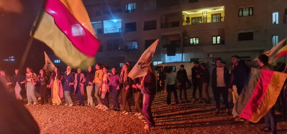 KOBANÊ – Ciwanên û Jinên Ciwan Kobanê bi pêxistana agir li qada Jina Azad salvegera 27’ê Mijdarê pîroz kirin.