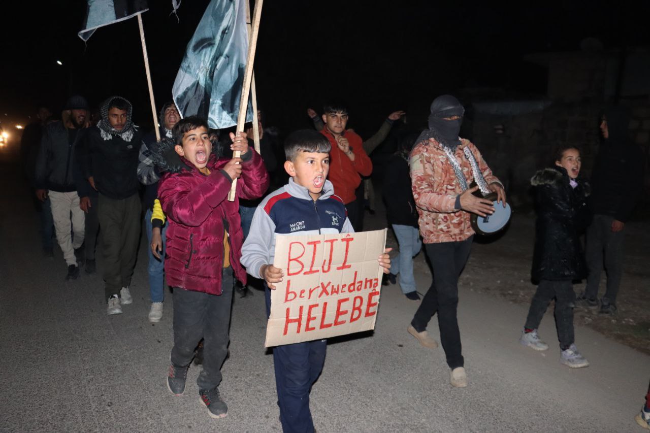 Ciwanan bi pankarta “Bijî Şerê Gel ê Şoreşgerî” û doviza “Bijî Berxwedana Gelê Helebê” bertekên xwe yên li dijî dagirkeriyê nîşan dan û di heman demê de bang li gel û bi taybet ciwanan kirin ku têkoşîna Şerê Gel ê Şoreşgerî de cîh bigrin.”