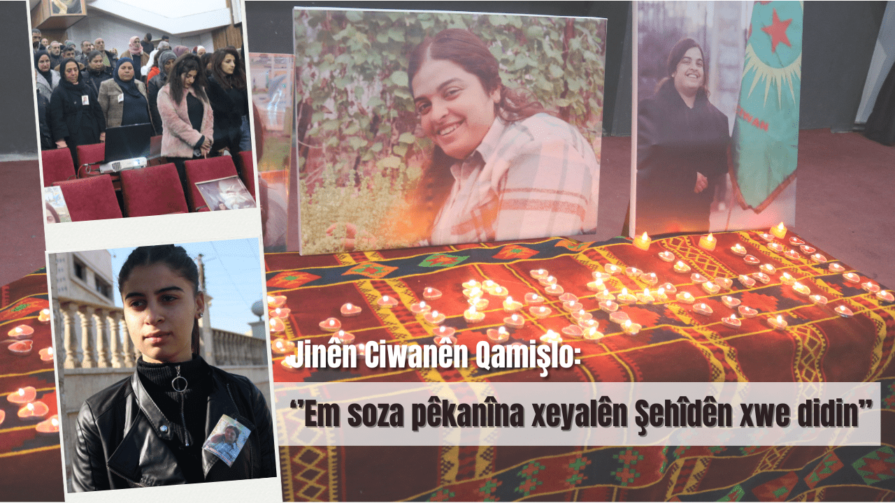 QAMIŞLO- Yekîtiya Jinên Ciwan îro li bajarê Qamişlo bîranin ji bo Şehîd Ronahî Amanos li dar xist. Li navenda Mihemed Şexo ya Çand û Hûner endamên Yekîtiya Jinên Ciwan û Tevgera Ciwanên Şoreşger, Meclîsa Malbata Şehîdan, Kongra Star, PYD û gelê Qamişlo kom bûn û Şehîd Ronahî Amanos bi bîr anin.