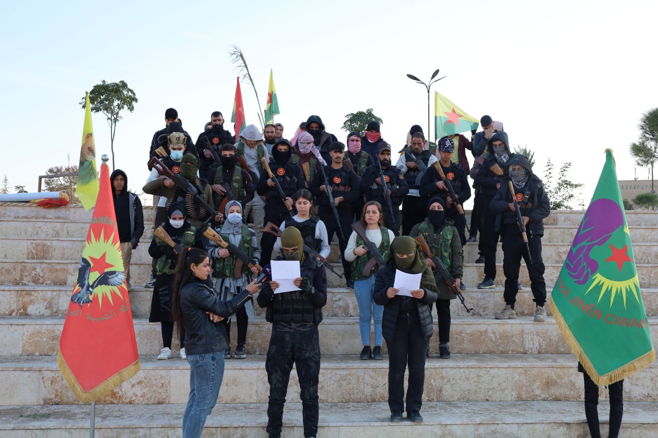 “Di van 12 salên şoreşa Rojava de dewleta Tirk a dagirker û çeteyên xwe, tim bi tim êrîşên li ser îradeya gelê herêmê pêk anîn. Gelê berxwedêr, bi ramanê Rêber Apo, her di azadiya xwe de israr kir û rêveberiya xwe ya demokratik ava kir. Di rojên dawî de, carekî din çeteyên di bin fermana dewleta Tirk a faşîst de dest bi êrîşên hovane li ser Helebê kirin, di planekî berfireh de ji bo têkbirina îradeya gel û rêveberiya xwe ya demokratik. Rejîma Sûrî û alîgirên wê jî, dev ji cihê xwe berdan û rê ji dagirkerî re vekirin. Gelê me yê Efrîn, Şehba û taxên Şêx Meqsûd û Eşrefiyê dîsa li beramberî dagirkerî disekinin û ji bo jiyanekî bi rûmet tekoşîn dikin.