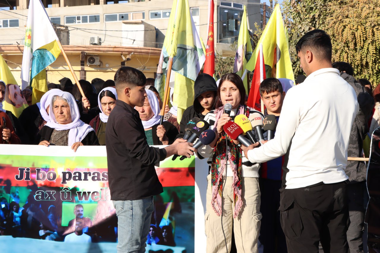 Di serî de em weke ciwanên Êzidî bi taybet weke gelê Şengalê, em berxwedaniya Rojava, ya ku ev çend roj berdewam dike, em silav dikin. Em bi berxwedaniya we re ne, em bi têkoşîna we re ne. Bila dewleta tirk a dagirker û hevkarên wî baş bizanibin, ev çeteyên we yên ku ev çend rojin êrîşên li ser Helep û Şehbayê û dixwazin îradeya gelan tune bikin, bila baş bizanibin, ew ê tucarî nikarin vê îradeyê tune bikin. Ji ber ku em xwedî rêberekî weke Rêber Apo ne. Em xwedî îradeyekê bi hezara şehîdan e. Em ê tu carî teslîmiyetê qabûl nakin. Çawa di 2014 gelê Rojava deriyê xwe ji me re vêkirin û tevahî pêkhateyên Rojava bi me re bûne alîkar û em hembêz kirin. Em jî weke gelê Êzidî bi tevahî heta dawî em gelê xwe yê Rojavayê re ne. Êrîşên ser Rojava êrîşên ser tevahiya gelê me ne. Ew bangewazî ku ji aliyê gelê me ye Rojava re hatî em îro hazir in ku biçin weke ciwanan Êzidî parastina Rojavayê Kurdistanê bikin. Em dîsa bêjin bijî berxwedana Rojava, bijî berxwedana gelê me ye vêderê, bijî berxwedana YPG, YPJ û QSD. Bijî bijî Rêber Apo.