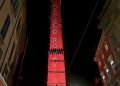 Ciwanan li ser avahiyeke dîrokî ya Torre Degli Asinelli ya li bajarê Bologna’yê peyva Rojava biparêze pêşkeş kirin.