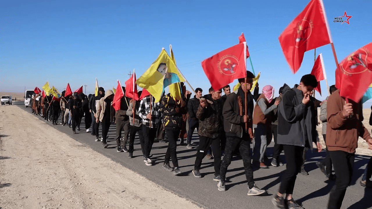 ŞENGAL- Doh ciwanên Ereb ji bo piştgiriya xelkê Rojava û QSD meşiyan. Ev meş li Şengalê gundê Barê û bi tevlîbûna ciwanên Êzidî hat lidarxistin.