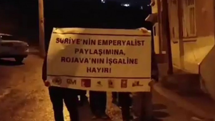 Li Îzmîrê rêxistinên ciwanên sosyalîst êrîşên dewleta Tirk û çeteyên wi yên li ser Bakur û Rojhilatê Sûriyeyê bi meşekê li Taxa Konak Kadifekale şermezar kirin. Di meşê de pankarta “Ji parçebûna Sûriyeyê ji aliyê emperyalîst ve û dagirkirina Rojava re na” hat vekirin û di dema pêxistina meşaleyan de timî dirûşmên “Bijî Berxwadana Rojava” û “Întîfada, serhildan. Filistîn, Kurdistan” hatin qîrîn.