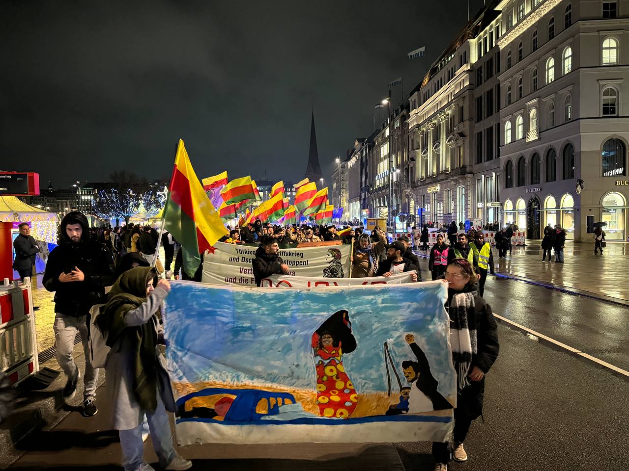 HAMBÛRG – Li bajarê Hambûrg ê Elmanyayê, bi pêşengiya ciwanên endamên Tevgera Ciwanên Şoreşger (TCŞ) li dijî êrîşên dagirkeriyê yên dewleta Tirk a faşîst û çeteyên wî yên li ser Rojava, meşek hat lidarxistin.