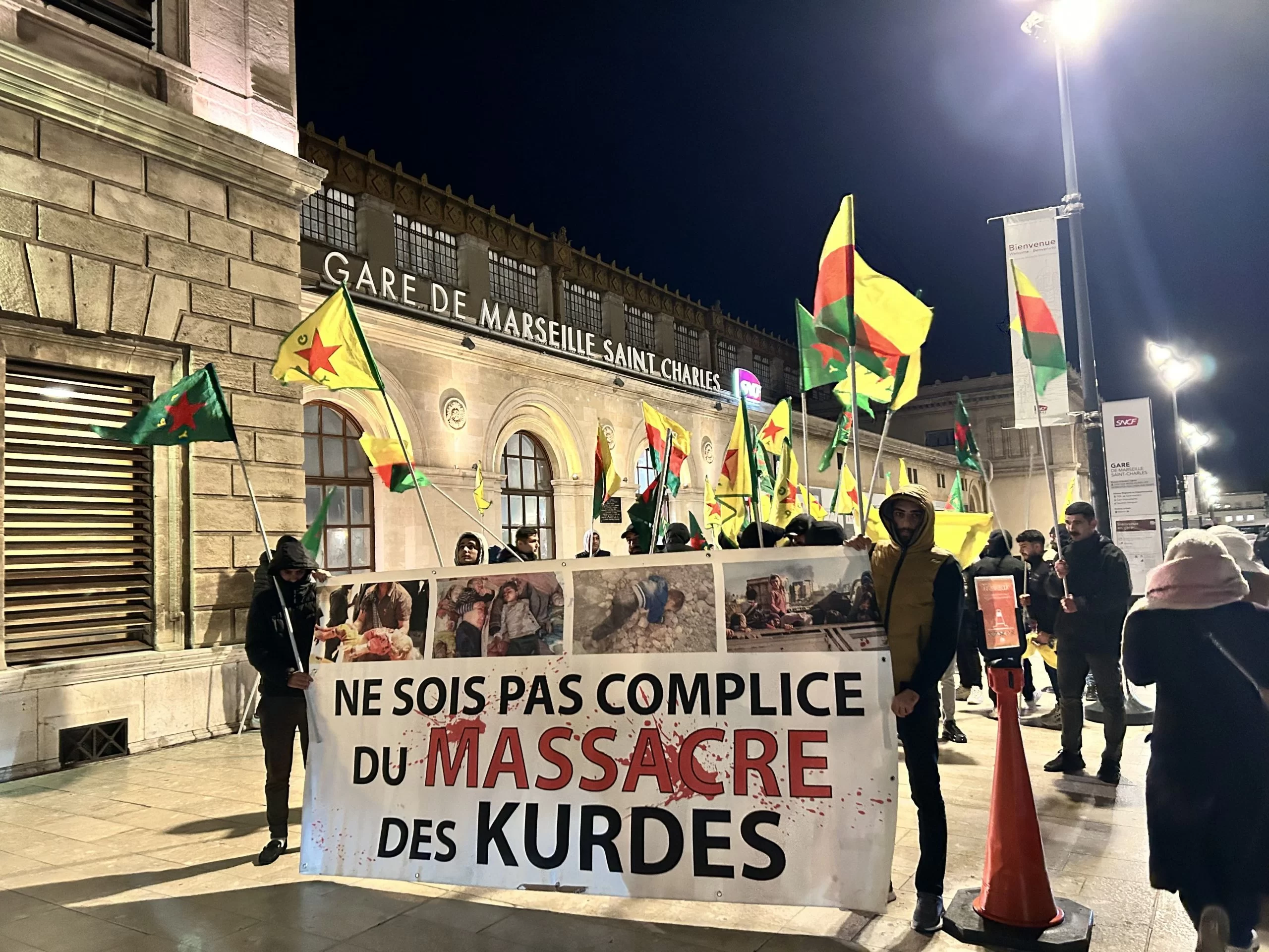 MARSÎLYA – Li dijî êrîşên dagirkeriyê yên dewleta Tirk a dagirker û qirker û çeteyên Artêşa Neteweyî ya Sûriyeyê ya li ser Rojava, ciwanên endamên Tevgera ciwanên Şoreşger (TCŞ) li Gara Trenê ya Marsîlyayê çalakiya bêîteatiya sivîl li dar xistin.