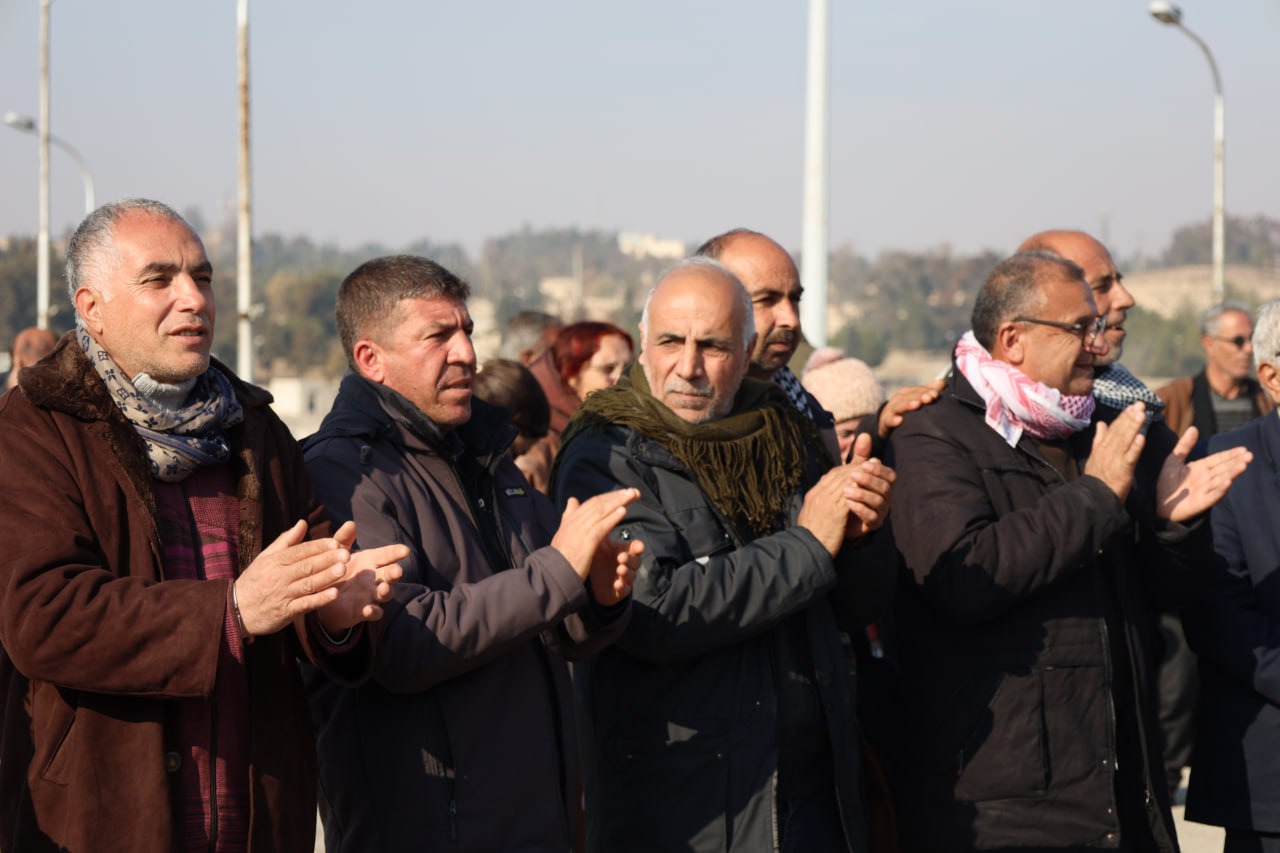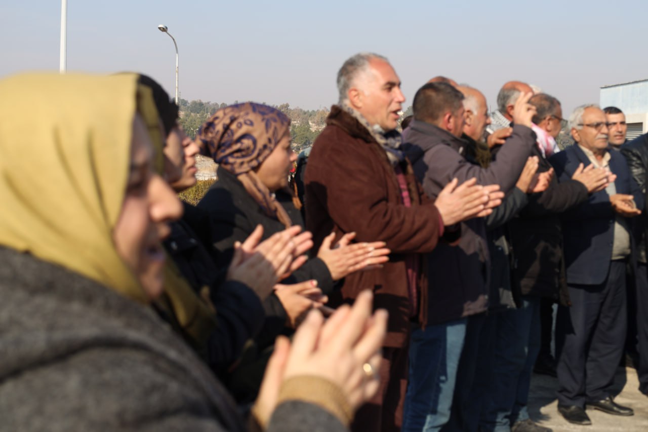 Her ku dengê teqîna bombeyên li Bendava Tişrînê bilind dibe, dirûşmên “Bijî Berxwedana Tişrînê” û “Bijî Berxwedana QSD” bilindtir dibin.