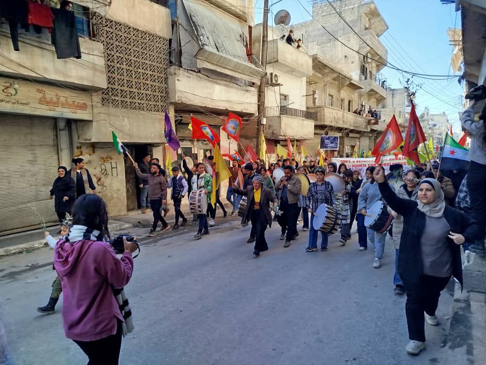 HELEB – Li taxa Şêx Meqsûd a bajarê Helebê ji bo pişgiriya berxwedana şervanên QSD li enîya Tişrînê û li dijî êrîşên hovane yên dewleta Tirk li ser nobedê gel li Bendavê meşekî girseyî hat lidarxistin. Bi hezaran gel beşdarî beşê bûn.