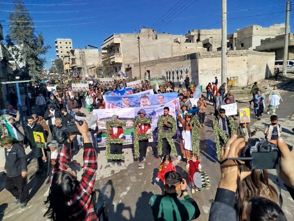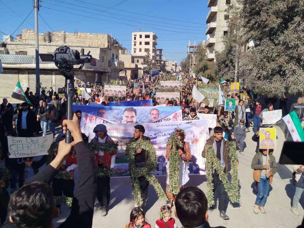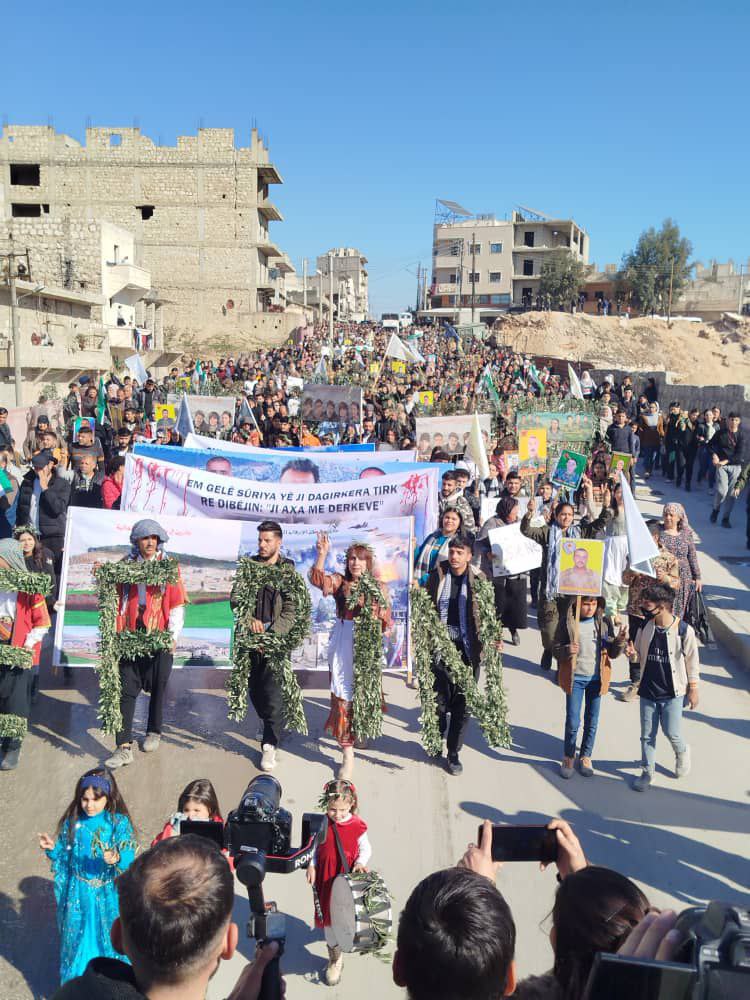 HELEB – Îro li taxên Şêx Meqsûd û Eşrefiyê yên bajarê Helebê bi boneya salvegera 7’emîn a êrîşên dagirkeriyê yên dewleta Tirk li ser Efrînê meşekî girseyî li darxistin.