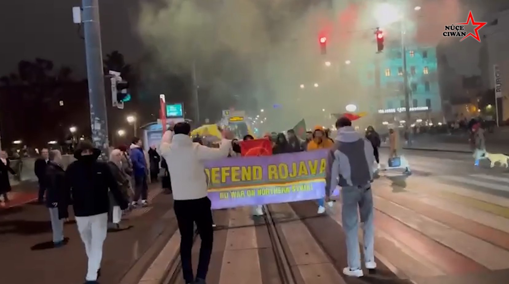 Ciwanên ku ji bo şermezarkirina êrîşên dagirkeriyê û qetlîamên dewleta Tirk a dagirker û çeteyên wê yên li dijî Rojava li dijî gelê sivîl daketin qadan, ji Zanîngeha Viyanayê heta ber parlementoya Awûstûryayê meşiyan.