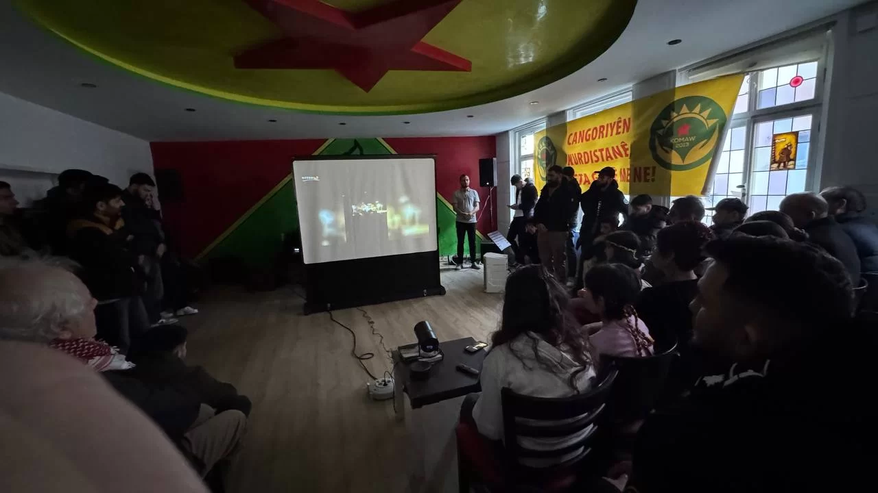 Çalakiya ku bi sedan ciwan û Kurdistanî beşdar bûn, li dû deqîqeya rêzgirtinê sînevîzyona ji bo bîranîna şehîd Sara Tolhildan, Rûken Zelal, Erdal Şahîn, Rojhat Zîlan, Rojger Hêlîn û Asya Alî hate pêşandan. Piştî sînevîzyonê li salonê dirûşmeyên “Şehîd Namirin” hatin berzkirin.