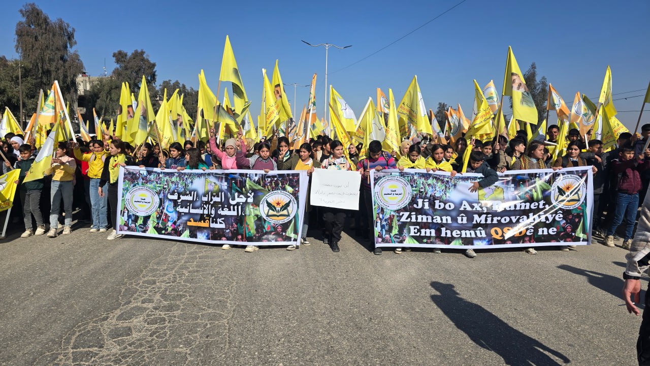 Meş li Çarxereya Sînalko dest pê kir û li Çarxereya Îtfayîyê bi dawî bû. Xwendekar dirûşmeyên “Berxwedan jiyan e”, “Bijî berxwedana QSD” û “Bijî berxwedana Tişrînê”.