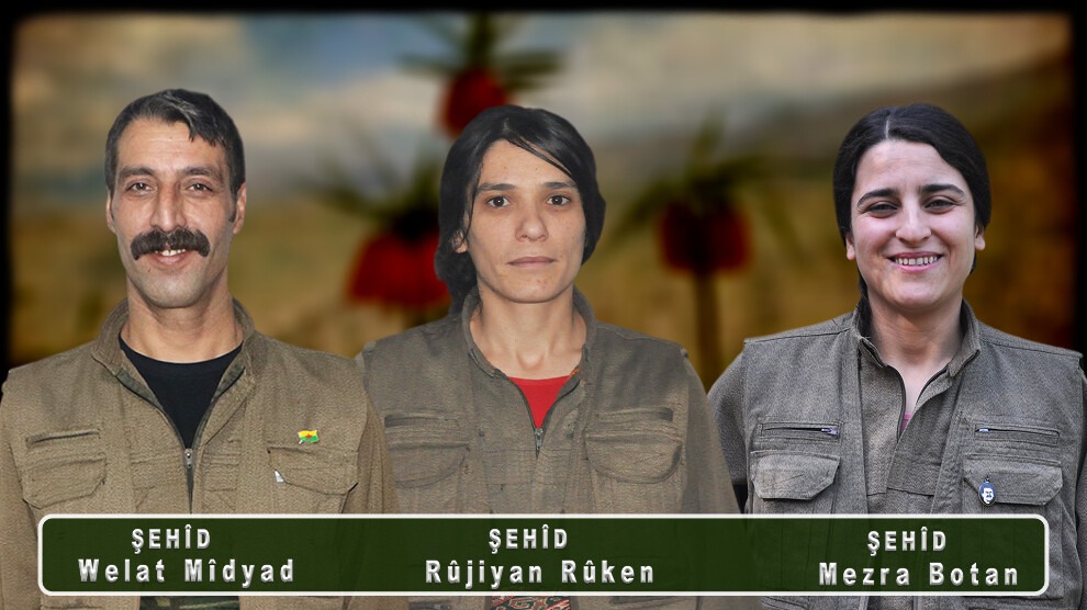 Hevrêyên me Welat, Rûjiyan û Mezra weke milîtanên bi wêrek ên Mêrdîn, Serhed û Botanê bi têkoşîna xwe gelê me hîn bêhtir nêzî azadiyê kirin. Di serî de malbatên hêja yên hevrêyê me, em ji hemû gelê Kurdistanê yê welatparêz re sersaxiyê dixwazin û soza xwe dubare dikin ku em ê Rêbertiya Azad û Kurdistana Azad ku hesreta şehîdên me ye, pêk bînin.